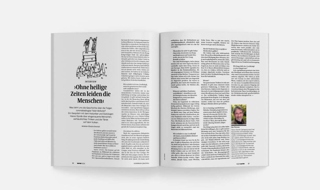 Was lehrt uns die Geschichte über die Folgen coronabedingter Feier-Verbote ? Ein Gespräch mit dem Historiker und Soziologen Hasso Spode über eingemauerte Menschen, verhäuslichtes Trinken und die Tänze auf dem Vulkan.