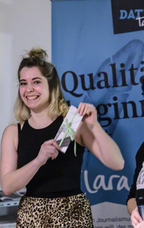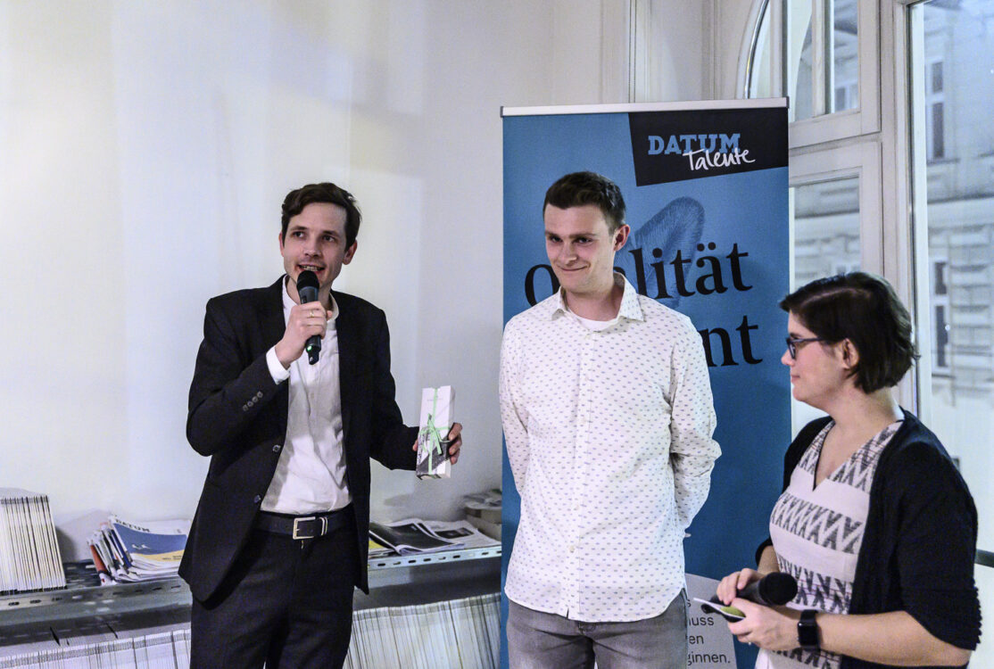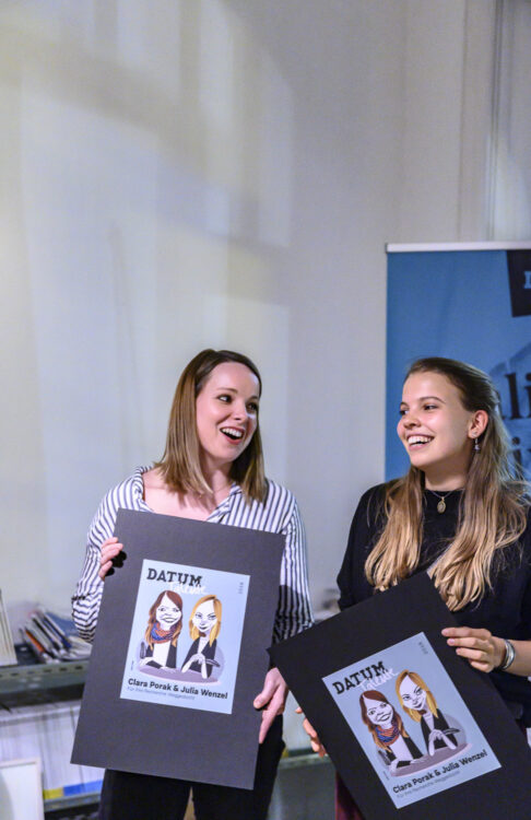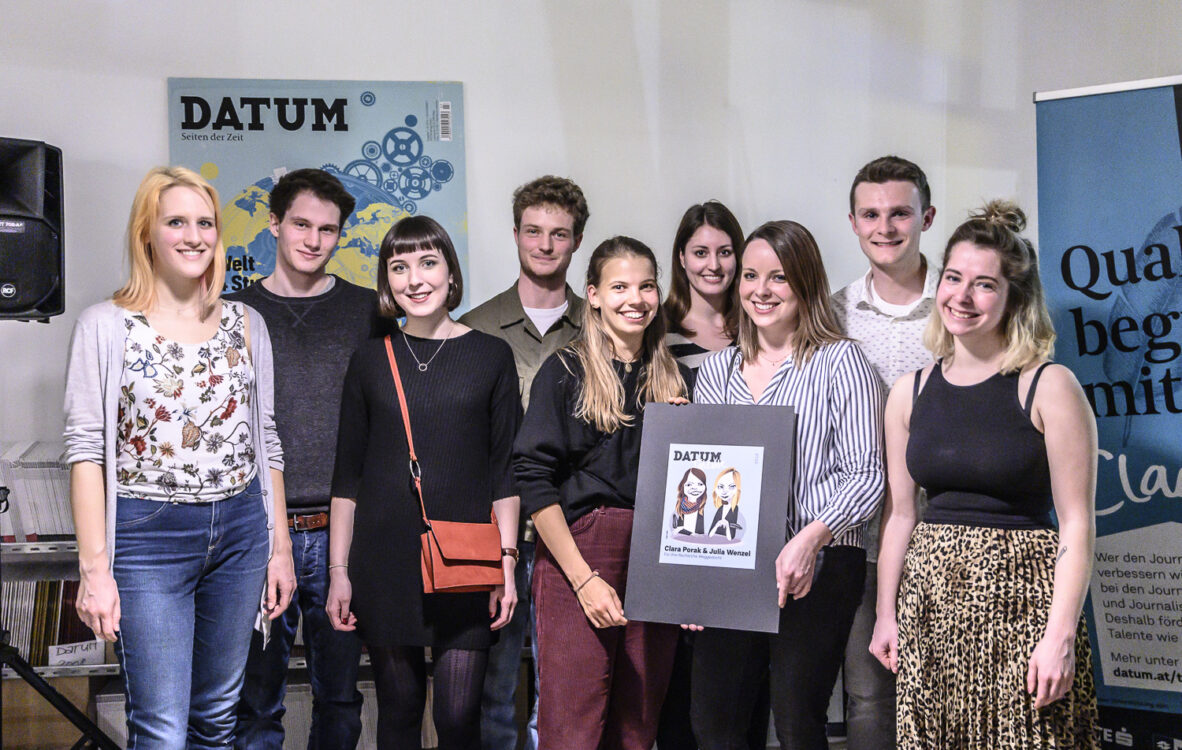 Elf Texte, 13 Autorinnen und Autoren und zwei Siegerinnen: Clara Porak und Julia Wenzel gewinnen mit ihrem Text „Weggedacht“ den DATUM-Talentepreis 2018. Ihre Reportage über den problematischen Umgang mit Abtreibung in Österreich setzte sich knapp gegen „Landsucht, Landflucht“ (Magdalena Berger) und „Ultra mächtig“ (Timo Schober) durch. Der Preis ist mit 1000 Euro dotiert, er wurde den beiden Nachwuchstalenten im Rahmen einer Feier in der DATUM-Redaktion am 28.2.19 überreicht.