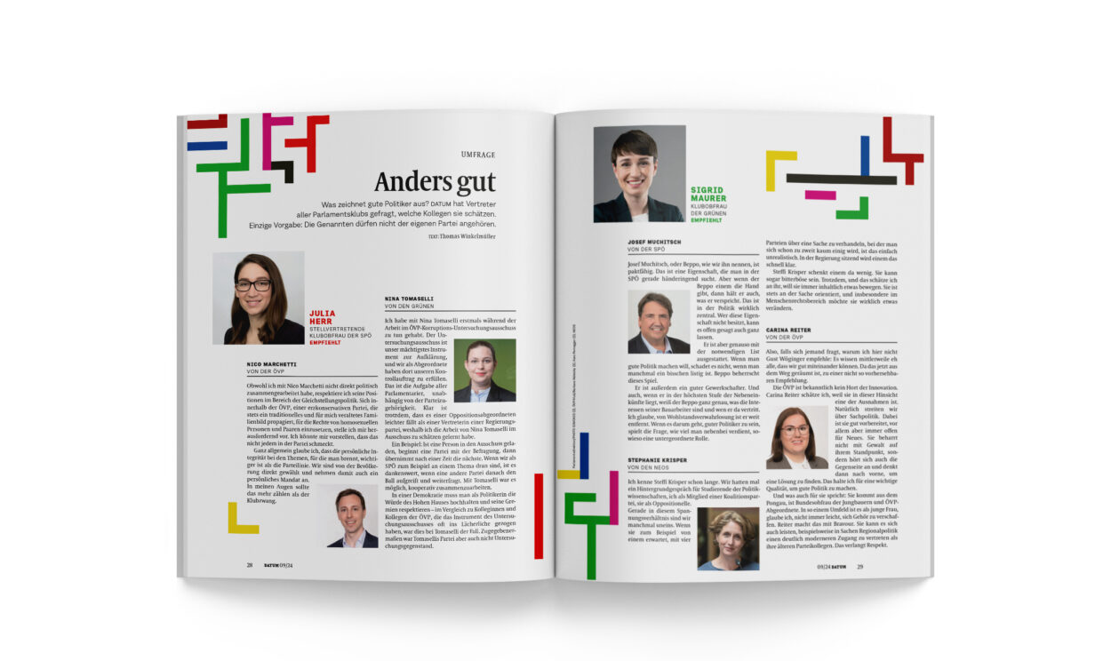 Was zeichnet gute Politiker aus? datum hat Vertreter aller Parlamentsklubs gefragt, welche Kollegen sie schätzen. Einzige Vorgabe: Die Genannten dürfen nicht der eigenen Partei angehören.