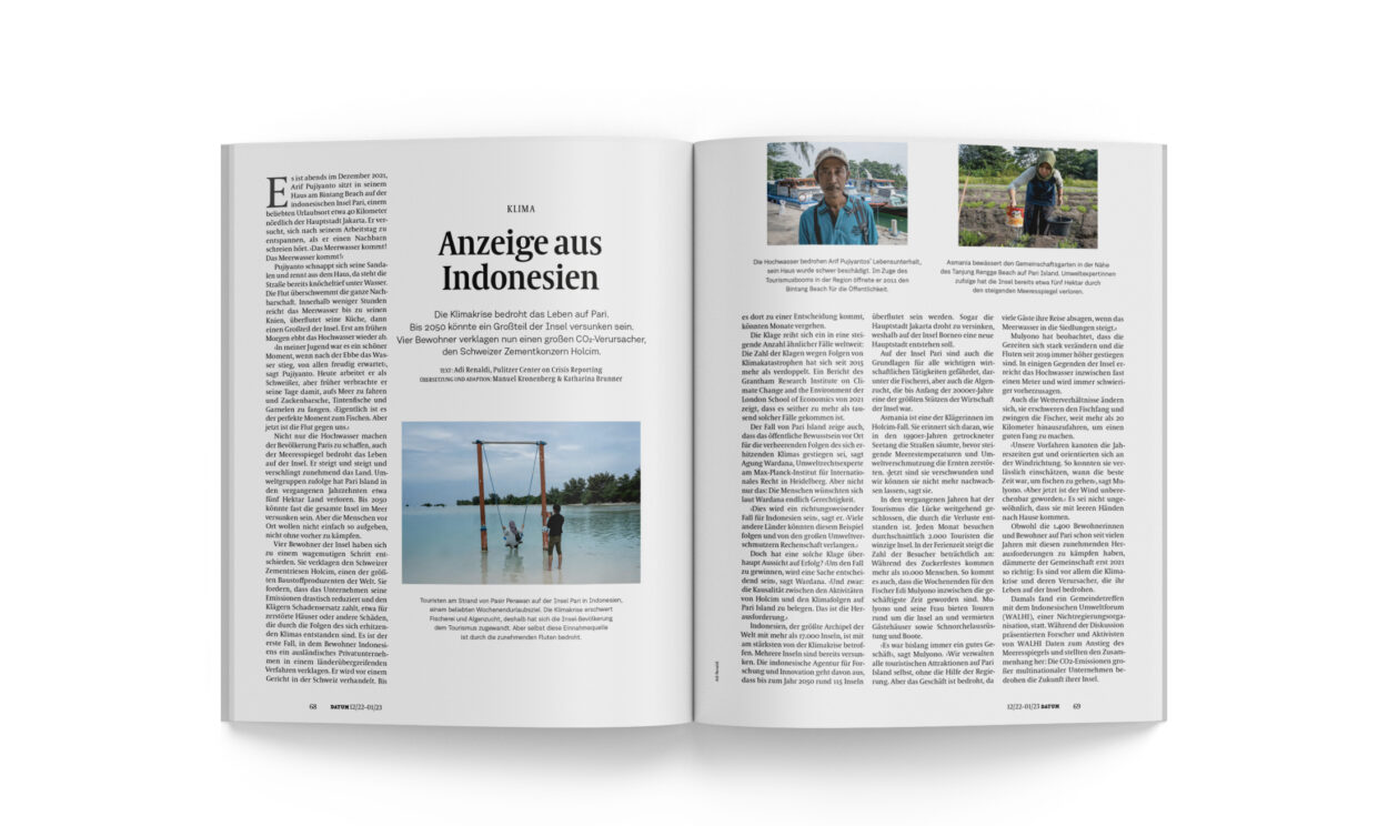 Die Klimakrise bedroht das Leben auf Pari. Bis 2050 könnte ein Großteil der Insel versunken sein. Vier Bewohner verklagen nun einen großen CO2-Verursacher, den Schweizer Zementkonzern Holcim.
