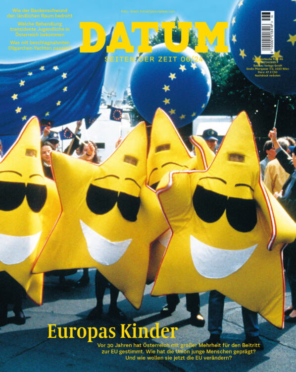 Julian Geier (ÖVP), Anna Stürgkh (NEOS) und Julian Krismer (SPÖ) sind 1994 im Jahr der EU-Volksabstimmung geboren – und treten am 9. Juni bei der Wahl zum Europaparlament an. datum bat sie zu einem Gespräch darüber, wie die EU sie geprägt hat und wie sie die EU prägen möchten.