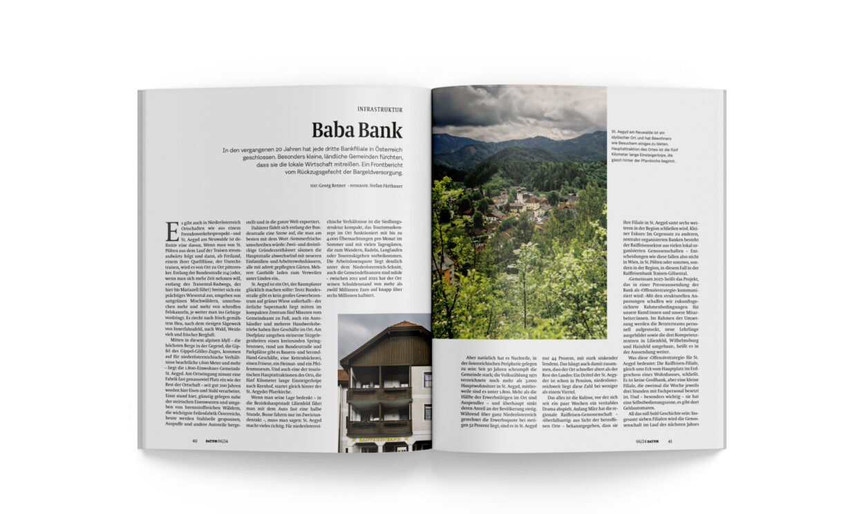 In den vergangenen 20 Jahren hat jede dritte Bankfiliale in Österreich geschlossen. Besonders kleine, ländliche Gemeinden fürchten, dass sie die lokale Wirtschaft mitreißen. Ein Frontbericht vom Rückzugsgefecht der Bargeldversorgung.