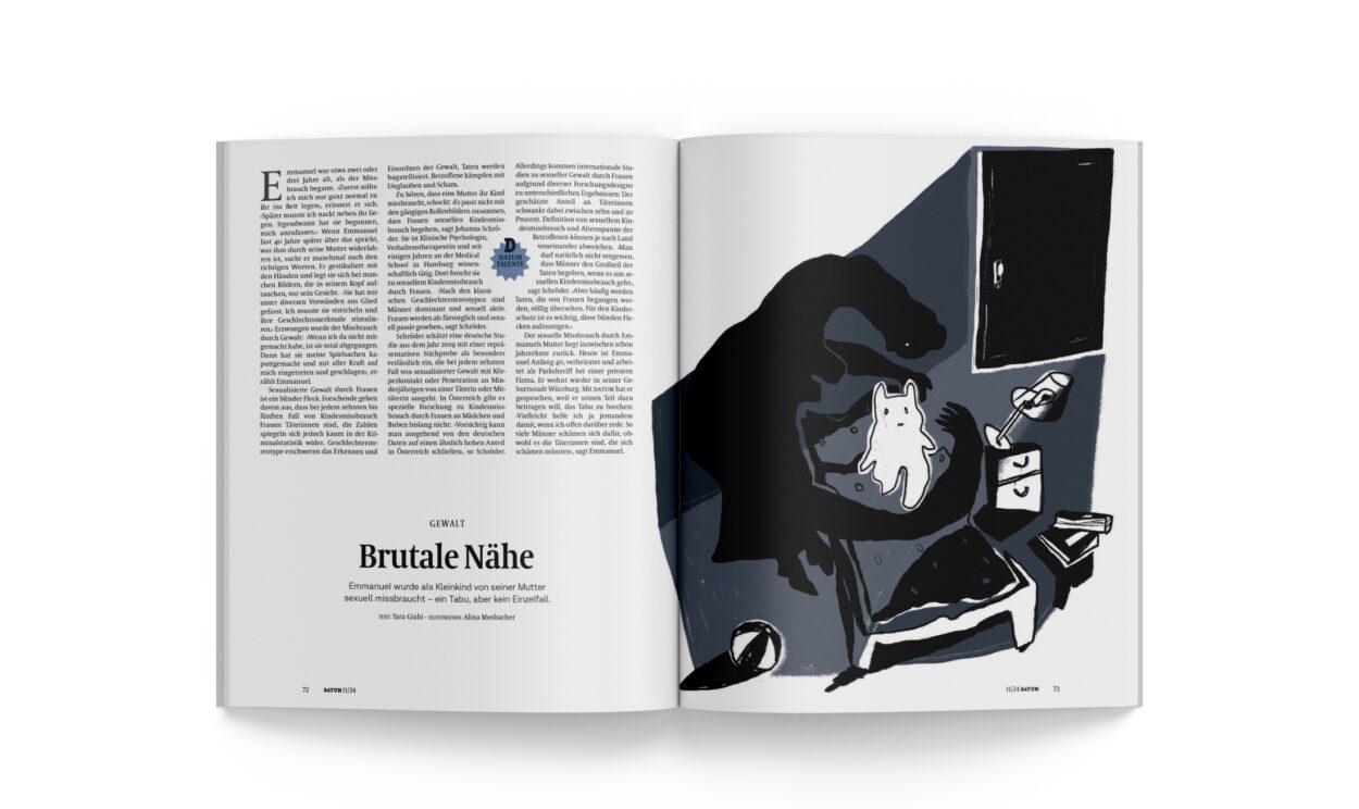 Emmanuel wollte vor sechs Jahren eine Selbsthilfegruppe für Männer, die von Frauen missbraucht worden sind, gründen. Es blieb jedoch bei einem Versuch: ›Es hat nicht an genügend Männern gefehlt, die so eine Kindheit hatten. Ihnen war es einfach nur zu peinlich und sie haben sich noch immer zu schlecht gefühlt, um offen in einer Runde darüber zu reden.‹ Um Betroffene zu entstigmatisieren, ihnen zu helfen und sexuellen Missbrauch durch Frauen zu verhindern, bräuchte es mehr gesellschaftliches Bewusstsein. ›Alle pädagogischen Ausbildungen bis hin zu Kindermedizinerinnen und -medizinern sollten mehr Wissen zu sexuellem Kindesmissbrauch haben‹, sagt Wölfl. Dazu gehöre auch die Schulung von juristischem Fachpersonal und Aufklärungsarbeit bei Institutionen und Behörden. ›Man sieht nur das, was man kennt‹, sagt Schröder. Obwohl es wichtig sei, Menschen nicht unter Generalverdacht zu stellen, ›müssen wir uns bewusst machen, dass grundsätzlich jede Person eine Täterin oder ein Täter sein könnte, unabhängig von Geschlecht, Auftreten oder sozialer Herkunft.‹ In den letzten Jahren habe sich institutionell laut Wölfl aber einiges verbessert. Seit 2024 müssen Österreichs Schulen verpflichtende Kinderschutzkonzepte erarbeiten, in denen etwa Situationen definiert werden, bei denen es zu Übergriffen kommen kann, sowie klare Handlungsrichtlinien bei Verdacht auf Gewalt. Eine weitere Verbesserung in puncto Kinderschutz ist, dass das Dunkelfeld immer heller wird – immer mehr Straftaten werden angezeigt. Der blinde Fleck rund um die Täterinnen wird kleiner, das Bewusstsein dafür, dass auch Frauen sexuelle Gewalt ausüben, steigt: ›Vor 20 Jahren hat man im Vergleich zu heute die Rolle von Frauen bei Kindesmissbrauch eher nur als wegschauend oder tolerierend wahrgenommen und nicht als aktiv gewaltausübend‹, sagt Schröder.