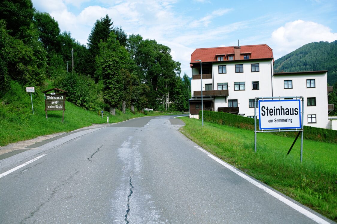 Der Refrain eines Liedes im Radio. So lange dauert es, im Auto durch Steinhaus am Semmering zu fahren, einmal von Ortsschild zu Ortsschild. Dazu muss man von der Schnellstraße S6 abfahren und beim lachsrosa gestrichenen Laufhaus scharf rechts einbiegen. Der Ort liegt ab vom Schuss, man erspäht ihn nur zufällig. Der Zug, dessen Rattern gelegentlich die Stille durchbricht, macht hier nicht halt. Steinhaus am Semmering, das ist ein Dorfgasthaus, ein Kindergarten, ein kleiner SPAR-Markt mit anschließendem Stüberl, umrahmt von viel Landschaft. In den hölzernen Schauboxen neben der Straße befestigen Stecknadeln die neuesten Aushänge der ÖVP, SPÖ, FPÖ, des Touristenvereins und Kameradschaftsbundes. Sie zeugen davon, dass die Welt hier noch in Kategorien zu passen scheint. Für die Steinhauser bringt die Abgeschiedenheit ihres Ortes viel Bewegungsfreiheit. Sie ist das, was sie unter Lebensqualität verstehen. Eine Qualität, die aus Sicht vieler von ihnen vor fünf Jahren, im September 2014, plötzlich beschnitten wurde.