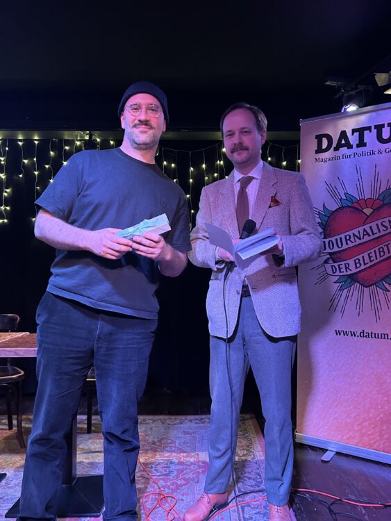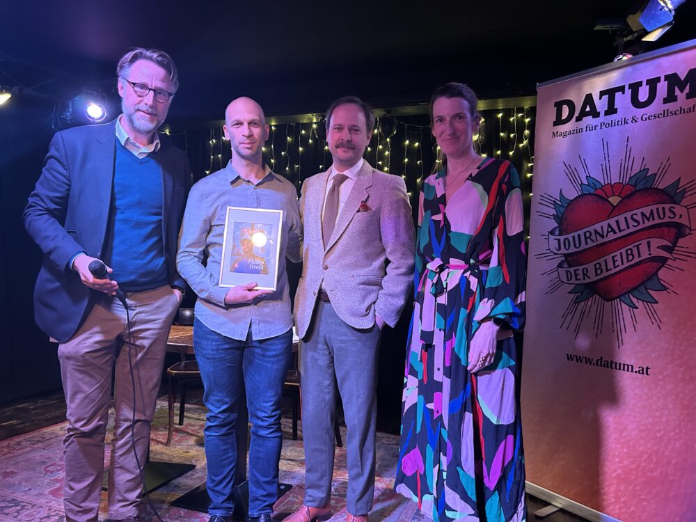 Phillip Strobl wurde am Abend des 6. März 2025 mit dem DATUM-Talentepreis 2024 ausgezeichnet, die Verleihung fand im Kulturcafé Tachles statt. Eine hochkarätige Fachjury bestehend aus den Journalistinnen und Journalisten Barbara Kaufmann, Solmaz Khorsand, Bernhard Odehnal, Joachim Riedl und Anneliese Rohrer hat Strobls Reportage mit dem Titel ›Der letzte Ausweg‹ aus der DATUM-Ausgabe 9/2024 zum Sieger des diesjährigen Wettbewerbs gekürt. Er hat darin die Geschichte eines Mannes nachgezeichnet, der sich für assistierten Suizid entschieden hat.