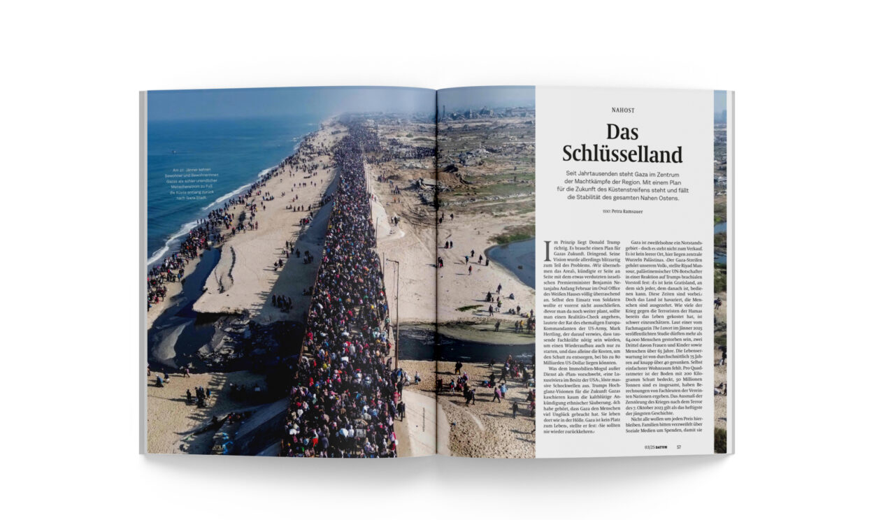 Im Prinzip liegt Donald Trump richtig. Es braucht einen Plan für Gazas Zukunft. Dringend. Seine Vision wurde allerdings blitzartig zum Teil des Problems. ›Wir übernehmen das Areal‹, kündigte er Seite an Seite mit dem etwas verdutzten israelischen Premierminister Benjamin Netanjahu Anfang Februar im Oval Office des Weißen Hauses völlig überraschend an. Selbst den Einsatz von Soldaten wollte er vorerst nicht ausschließen. ›Bevor man da noch weiter plant, sollte man einen Realitäts-Check angehen‹, lautete der Rat des ehemaligen Europa-Kommandanten der US-Army, Mark Hertling, der darauf verwies, dass tausende Fachkräfte nötig sein würden, um einen Wiederaufbau auch nur zu starten, und dass alleine die Kosten, um den Schutt zu entsorgen, bei bis zu 80 Milliarden US-Dollar liegen könnten.
