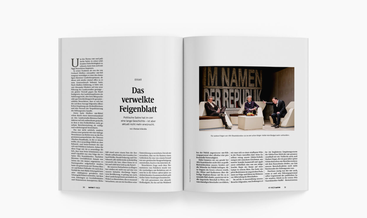 Um das Thema ›ORF und politische Satire‹ in seiner schillernden Vielschichtigkeit zu erfassen, kann man auch mit Siggi Neuschitzer beginnen. In seiner Funktion als von der FPK Gerhard Dörflers entsandter ORF-Stiftungsrat verteidigte er einst den damaligen Kärntner Landeshauptmann, als dieser sich wieder einmal offen zu einem Gesetzesbruch bekannt hatte. Nach Dörflers Erklärung, er hätte sich ›mit Alexander Wrabetz auf eine neue Führung des Landesstudios geeinigt‹ – ein glatter Verstoß gegen das Rundfunkgesetz, das Landeshauptleuten ein Anhörungsrecht, aber kein Mitsprache- oder gar Entscheidungsrecht gestattet – erklärte Neuschitzer, dass es sich bei der auf diese Aussage folgenden öffentlichen Empörung um ›Krokodilstränen und den Versuch der Verpolitisierung des Stiftungsrates‹ handle. Zuvor hatte Dörflers ORF-Büttel schon durch einen Interventionsbrief an den Landesstudio-Kärnten-Chefredakteur auf sich aufmerksam gemacht, in dem er den Freiheitlichen nicht genehme Berichterstattung als ›ecklig‹ und ›eckelerregend‹ bezeichnete.