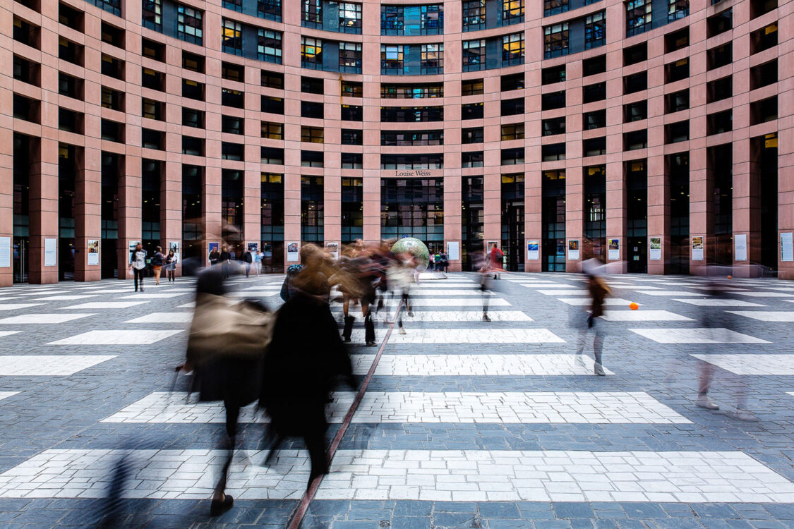 Im Innenhof des Louise-Weiss-Gebäudes, der sogenannten Agorá, ist das Rollen kleiner Kofferräder zu hören. Es ist Montag in der elsässischen Metropole, 13 Uhr 30. Eine weitere jener ›roten Wochen‹ beginnt. Die ersten Abgeordneten passieren die Sicherheitsschleuse am Haupteingang, auch Journalisten und Dolmetscher sind darunter. Sie ziehen ihre Trolleys durch die eisigkalte Zugluft, ohne dabei für Selfies zu posieren, wie die Touristen, an denen sie vorbeihuschen. Der erste Termin der neuen Woche wartet: Parlamentssprecher Jaume Duch Guillot lädt zum traditionellen Pressebriefing. Die ›intensivste Plenarwoche der Legislaturperiode‹ steht bevor. Tatsächlich ist der Papierbogen der Tagesordnung so dick wie nie. Copyright und Brexit dominieren die Agenda. Ein schrilles Klingeln läutet um 17 Uhr die Debatte ein.