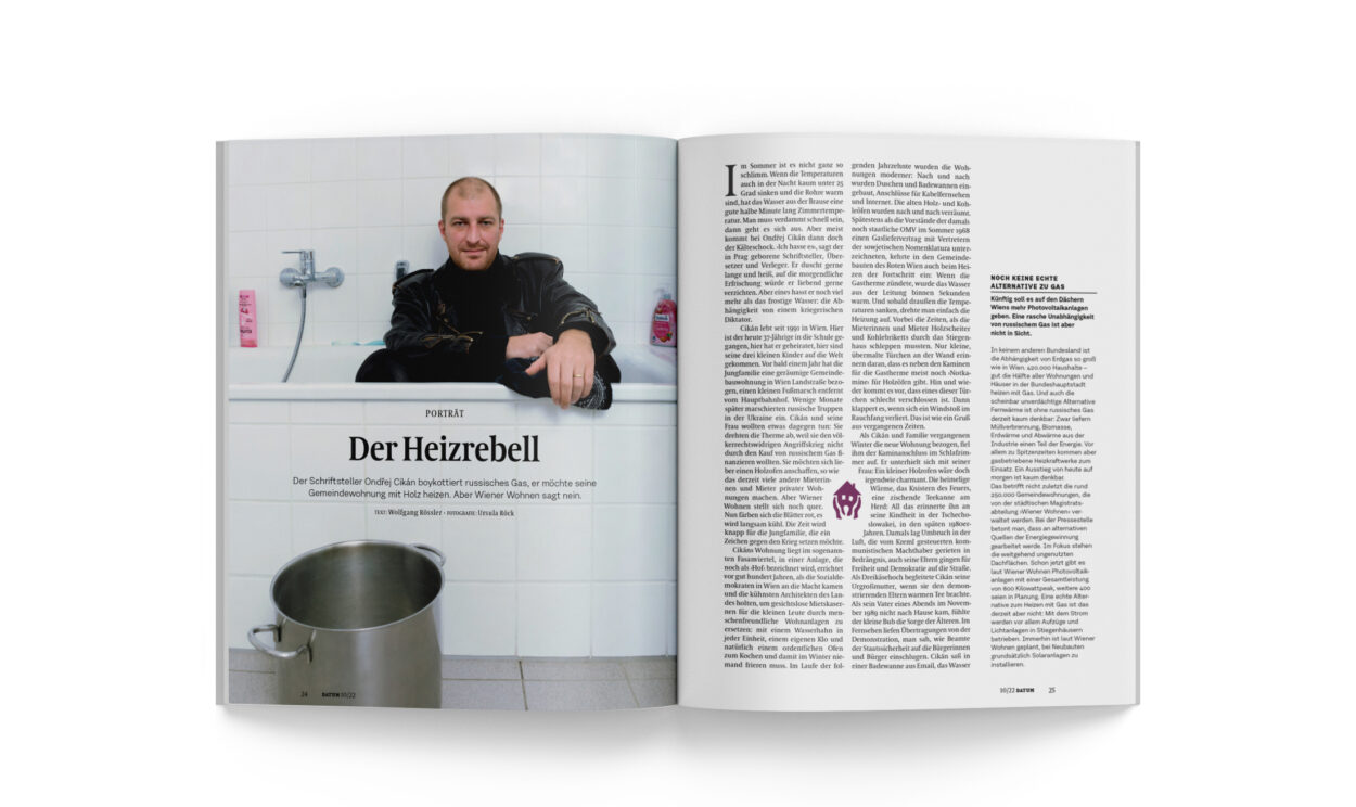 Cikán lebt seit 1991 in Wien. Hier ist der heute 37-Jährige in die Schule gegangen, hier hat er geheiratet, hier sind seine drei kleinen Kinder auf die Welt gekommen. Vor bald einem Jahr hat die Jungfamilie eine geräumige Gemeindebauwohnung in Wien Landstraße bezogen, einen kleinen Fußmarsch entfernt vom Hauptbahnhof. Wenige Monate später marschierten russische Truppen in der Ukraine ein. Cikán und seine Frau wollten etwas dagegen tun: Sie drehten die Therme ab, weil sie den völkerrechtswidrigen Angriffskrieg nicht durch den Kauf von russischem Gas finanzieren wollten. Sie möchten sich lieber einen Holzofen anschaffen, so wie das derzeit viele andere Mieterinnen und Mieter privater Wohnungen machen. Aber Wiener Wohnen stellt sich noch quer. Nun färben sich die Blätter rot, es wird langsam kühl. Die Zeit wird knapp für die Jungfamilie, die ein Zeichen gegen den Krieg setzen möchte.