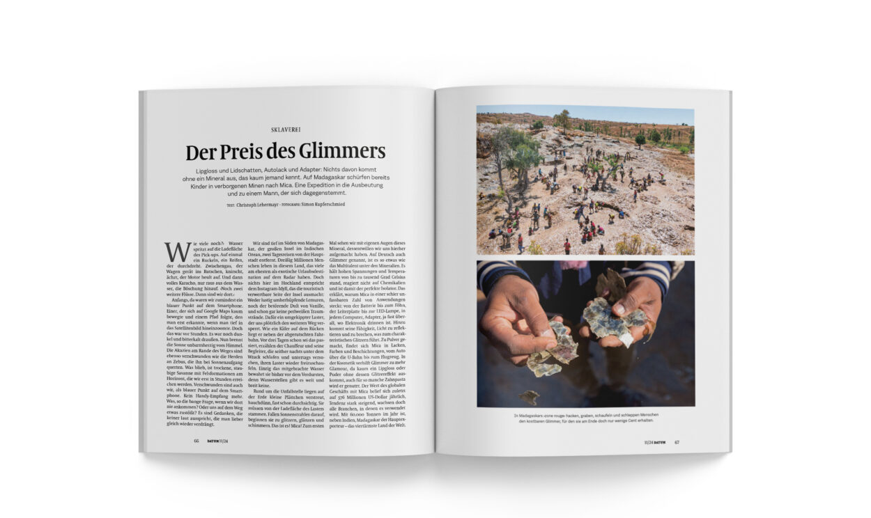 Lipgloss und Lidschatten, Autolack und Adapter: Nichts davon kommt ohne ein Mineral aus, das kaum jemand kennt. Auf Madagaskar schürfen bereits Kinder in verborgenen Minen nach Mica. Eine Expedition in die Ausbeutung und zu einem Mann, der sich dagegenstemmt.