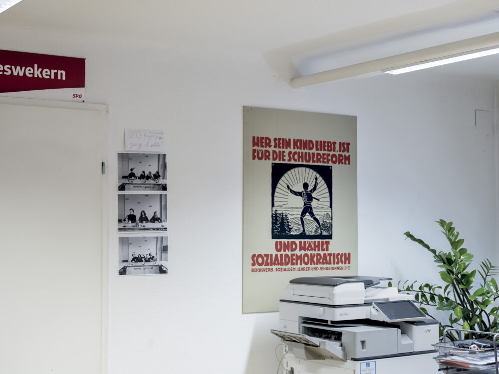 In dem Parteisitz, wo die Zeit zwischen Linoleumböden und engen Altbaugängen stehen geblieben scheint, erfinden sich zwei Parteien neu, die eigentlich eine sind. Im zweiten Stock des Hauses sitzt Kern und führt die Bundespartei. Einen Stock tiefer leitet Ludwig seit Kurzem die Wiener Landespartei. Die räumliche Nähe bedeutet nicht unbedingt, dass man sich gut versteht. ›Der Horizont der Landespartei endet an der Decke im ersten Stockwerk‹, sagt ein langjähriger Mitarbeiter der Partei. Die beiden Geschäftsführer – Max Lercher für die Bundespartei und Barbara Novak für die Landespartei – betonen allerdings, künftig enger zusammenarbeiten zu wollen. Interviewtermine absolvieren sie manchmal schon gemeinsam.