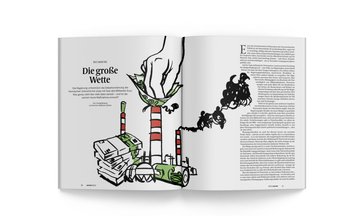 Einzig die Freiheitlichen stellen sich prinzipiell gegen die Transformationsförderung: ›Dieses Gesetz ist ein weiterer Baustein einer vollkommen überzogenen »Klimapolitik«‹, heißt es aus dem FPÖ-Klub auf DATUM-Anfrage. Nicht nur würde die Klimaministerin mittels nur drei Paragraphen zur Verteilung von drei Milliarden ermächtigt – es handle sich auch um teure ›Klientelpolitik‹ zugunsten von Industrie und Großunternehmen, während Mittelstand und KMU auf der Strecke blieben.