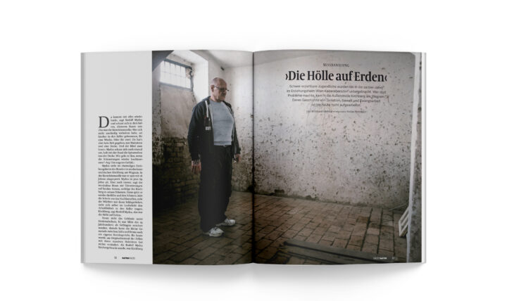 Mydza steht im ehemaligen Erziehungsheim des Bundes im niederösterreichischen Kirchberg am Wagram. In der Korrektionszelle war er 1970 mit 16 Jahren eingesperrt. Mydza ist jetzt 69 Jahre alt. Aber noch immer, sagt der muskulöse Mann mit Tätowierungen auf beiden Armen, verfolge ihn Kirchberg in seinen Träumen. Dann spürt er wieder die Kälte und den Schmerz, hört die Schreie aus den Nachbarzellen, sieht die Wächter mit ihren Schlagstöcken, sieht sich selbst im Laufschritt den ›Scheißkübel‹ in den Keller tragen. Kirchberg, sagt Rudolf Mydza, ›das war die Hölle auf Erden‹.