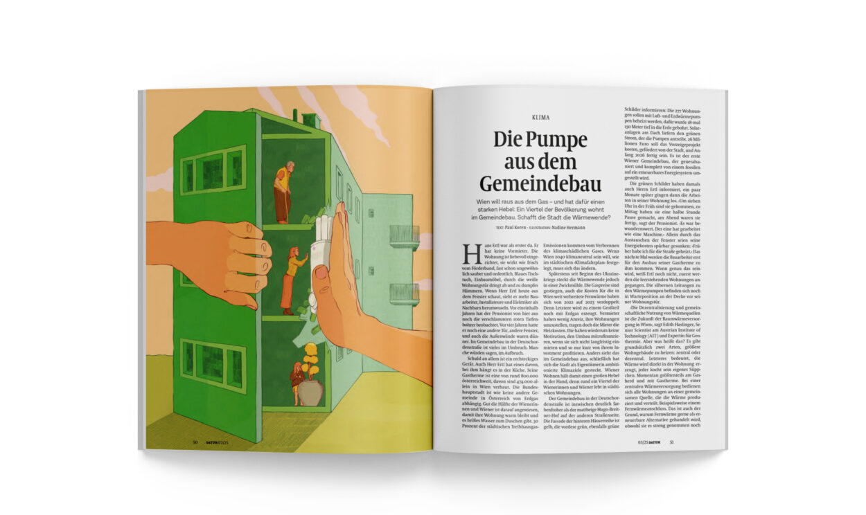 Schuld an allem ist ein rechteckiges Gerät. Auch Herr Ertl hat eines davon, bei ihm hängt es in der Küche. Seine Gastherme ist eine von rund 800.000 österreichweit, davon sind 474.000 allein in Wien verbaut. Die Bundeshauptstadt ist wie keine andere Gemeinde in Österreich von Erdgas abhängig. Gut die Hälfte der Wienerinnen und Wiener ist darauf angewiesen, damit ihre Wohnung warm bleibt und es heißes Wasser zum Duschen gibt. 30 Prozent der städtischen Treibhausgas-Emissionen kommen vom Verbrennen des klimaschädlichen Gases. Wenn Wien 2040 klimaneutral sein will, wie im städtischen ›Klimafahrplan‹ festgelegt, muss sich das ändern.
