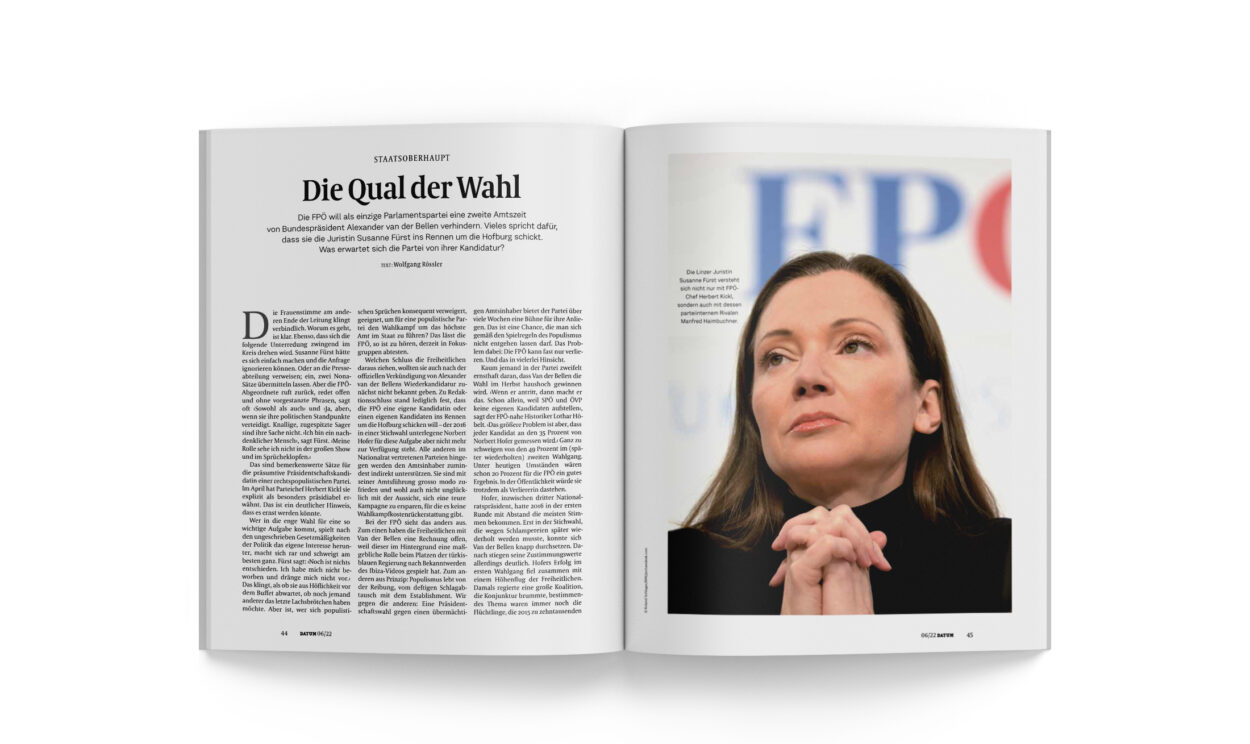 Die Frauenstimme am anderen Ende der Leitung klingt verbindlich. Worum es geht, ist klar. Ebenso, dass sich die folgende Unterredung zwingend im Kreis drehen wird. Susanne Fürst hätte es sich einfach machen und die Anfrage ignorieren können. Oder an die Presseabteilung verweisen; ein, zwei Nona-Sätze übermitteln lassen. Aber die FPÖ-Abgeordnete ruft zurück, redet offen und ohne vorgestanzte Phrasen, sagt oft ›Sowohl als auch‹ und ›Ja, aber‹, wenn sie ihre politischen Standpunkte verteidigt. Knallige, zugespitzte Sager sind ihre Sache nicht. ›Ich bin ein nachdenklicher Mensch‹, sagt Fürst. ›Meine Rolle sehe ich nicht in der großen Show und im Sprücheklopfen.‹