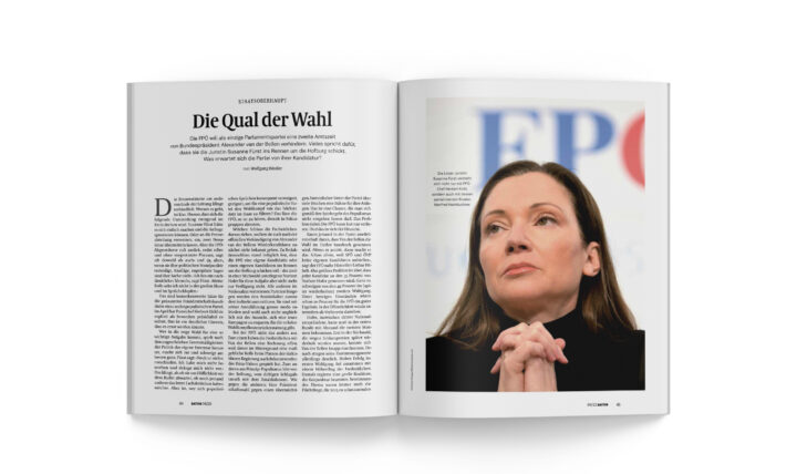 Wer in die enge Wahl für eine so wichtige Aufgabe kommt, spielt nach den ungeschrieben Gesetzmäßigkeiten der Politik das eigene Interesse herunter, macht sich rar und schweigt am besten ganz. Fürst sagt: ›Noch ist nichts entschieden. Ich habe mich nicht beworben und dränge mich nicht vor.‹ Das klingt, als ob sie aus Höflichkeit vor dem Buffet abwartet, ob noch jemand anderer das letzte Lachsbrötchen haben möchte. Aber ist, wer sich populistischen Sprüchen konsequent verweigert, geeignet, um für eine populistische Partei den Wahlkampf um das höchste Amt im Staat zu führen? Das lässt die FPÖ, so ist zu hören, derzeit in Fokusgruppen abtesten.
