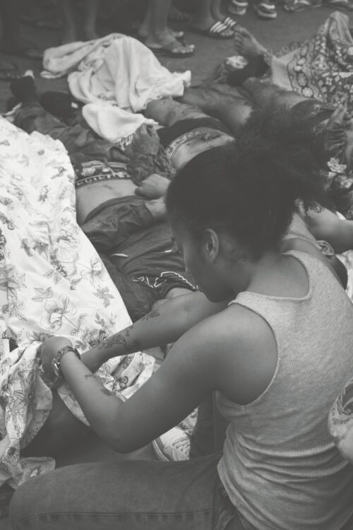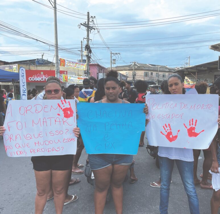Als die Sonne am nächsten Morgen aufgeht, liegen die Leichen entlang einer Straße in Penha. Aufgereiht in einer Linie, Schulter an Schulter, mehr als 50 getötete Männer. Es sind längst nicht alle. Viele von ihnen sind nur in Unterwäsche gekleidet, andere mit Bettlaken bedeckt, um sie vor den Blicken der Passanten zu schützen. Über die Toten beugen sich Mütter, Ehefrauen, Kinder. Sie wimmern vor Schmerz.