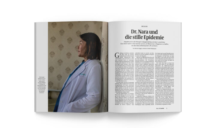 Gedränge, Geschubse, Geschrei. Auf dem Gang des Provinzkrankenhauses in Altai herrscht Tumult. Aufgebrachte Menschen drohen, das Arztzimmer zu stürmen. Lautstark treibt ein stämmiger Mann in Operationskleidung die Traube zurück und schließt die Tür, die Chaos von Ruhe trennt. Drinnen atmet eine Frau im weißen Kittel auf. Darunter trägt sie ein modisches Kleid mit Spitzenbesatz, dazu cremefarbene Stöckelschuhe, Lippenstift und eine Spange, die ihr pechschwarzes Haar am Schopf zusammenhält. Dr. Nara nimmt einen Schluck Milchkaffee aus ihrer Thermoskanne und streicht sich die Strähnen aus dem Gesicht, das aussieht wie mit weichem Bleistift gezeichnet. Die 44-jährige Ärztin wirkt gelassen, obwohl sie weiß, was vor der Tür auf sie wartet.