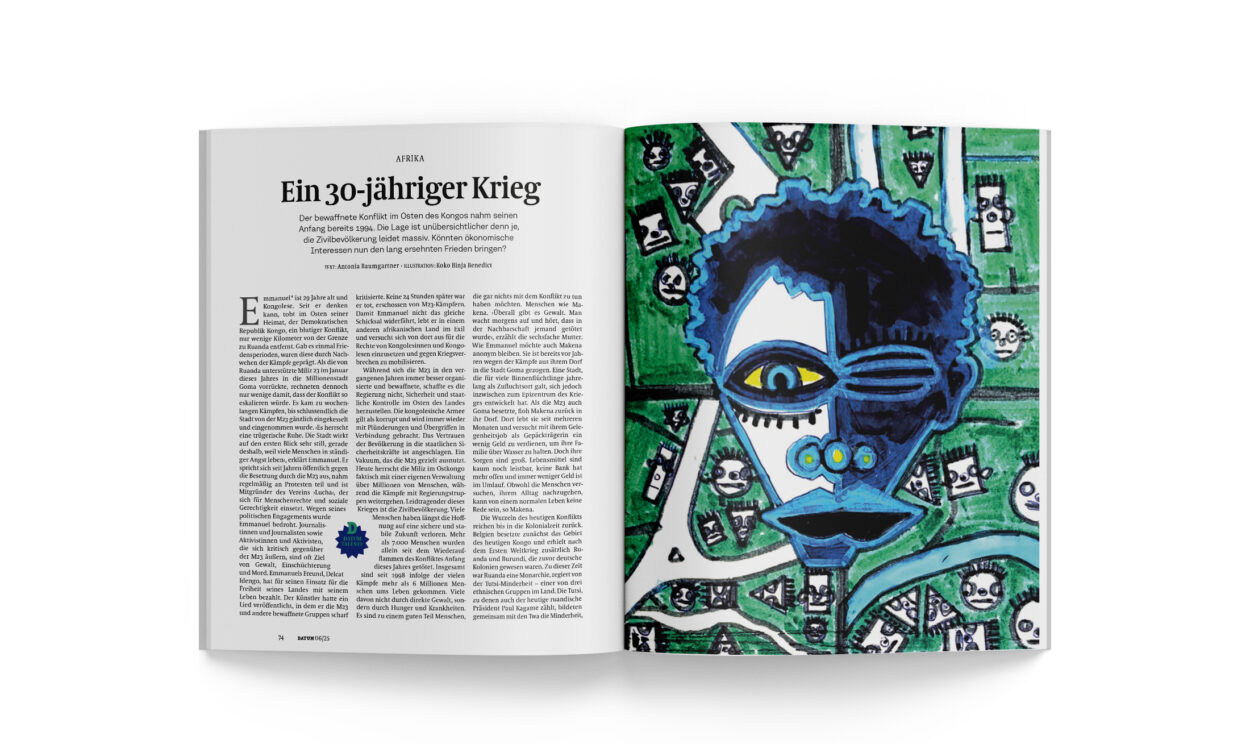 Emmanuel* ist 29 Jahre alt und Kongolese. Seit er denken kann, tobt im Osten seiner Heimat, der Demokratischen Republik Kongo, ein blutiger Konflikt, nur wenige Kilometer von der Grenze zu Ruanda entfernt. Gab es einmal Friedensperioden, waren diese durch Nachwehen der Kämpfe geprägt. Als die von Ruanda unterstützte Miliz 23 im Januar dieses Jahres in die Millionenstadt Goma vorrückte, rechneten dennoch nur wenige damit, dass der Konflikt so eskalieren würde. Es kam zu wochenlangen Kämpfen, bis schlussendlich die Stadt von der M23 gänzlich eingekesselt und eingenommen wurde. ›Es herrscht eine trügerische Ruhe. Die Stadt wirkt auf den ersten Blick sehr still, gerade deshalb, weil viele Menschen in ständiger Angst leben‹, erklärt Emmanuel. Er spricht sich seit Jahren öffentlich gegen die Besetzung durch die M23 aus, nahm regelmäßig an Protesten teil und ist Mitgründer des Vereins ›Lucha‹, der sich für Menschenrechte und soziale Gerechtigkeit einsetzt. Wegen seines politischen Engagements wurde Emmanuel bedroht. Journalistinnen und Journalisten sowie Aktivistinnen und Aktivisten, die sich kritisch gegenüber der M23 äußern, sind oft Ziel von Gewalt, Einschüchterung und Mord. Emmanuels Freund, Delcat Idengo, hat für seinen Einsatz für die Freiheit seines Landes mit seinem Leben bezahlt. Der Künstler hatte ein Lied veröffentlicht, in dem er die M23 und andere bewaffnete Gruppen scharf kritisierte. Keine 24 Stunden später war er tot, erschossen von M23-Kämpfern. Damit Emmanuel nicht das gleiche Schicksal widerfährt, lebt er in einem anderen afrikanischen Land im Exil und versucht sich von dort aus für die Rechte von Kongolesinnen und Kongolesen einzusetzen und gegen Kriegsverbrechen zu mobilisieren.