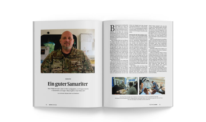Die ersten Einsätze von TacMed Ukraine, das ist die NGO, für die Pollak unterwegs ist, kommen meist nach 22 Uhr oder 23 Uhr. Denn erst im Schutz der Dunkelheit können Verwundete in Frontnähe geborgen und ins Hinterland gebracht werden. Am Abend sind Teams eingeteilt, die Fahrzeuge vorbereitet. ›Wir wissen dann, wie viele Patienten wir übernehmen und wie viele davon wir liegend, wie viele sitzend transportieren können‹, erklärt Pollak. Über den Verwundungsgrad erfahren sie meist wenig. ›Wir wissen nur, ob sie einen Intensivtransport brauchen oder nicht.‹