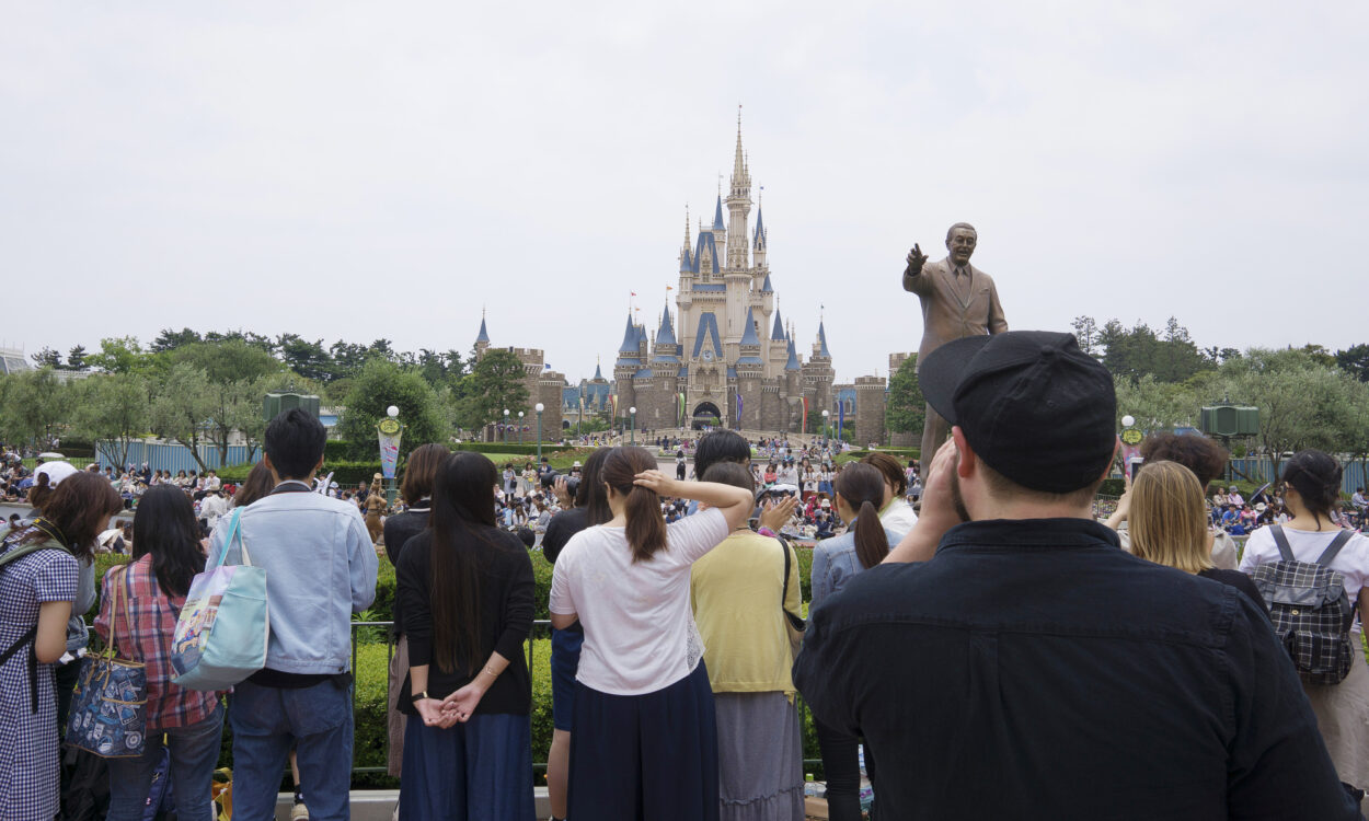 Im sauberen Moloch Tokio, dem größten Ballungsgebiet der Welt, sind alle Wege lang. Nach mehrfachem Umsteigen sitze ich in der Bahn, die mich entlang von grauen Wiesen, Flussmündungen und bröckelnder Industrie in Richtung ›Tokyo Disney Resort‹ bringt, das genau genommen nicht in Tokio, sondern in Urayasu liegt. Um mich herum starren Eltern auf ihre Smartphones. Die Kinder quieken aufgeregt, wie es Kinder überall auf der Welt tun, wenn sie auf dem Weg in einen Freizeitpark sind.