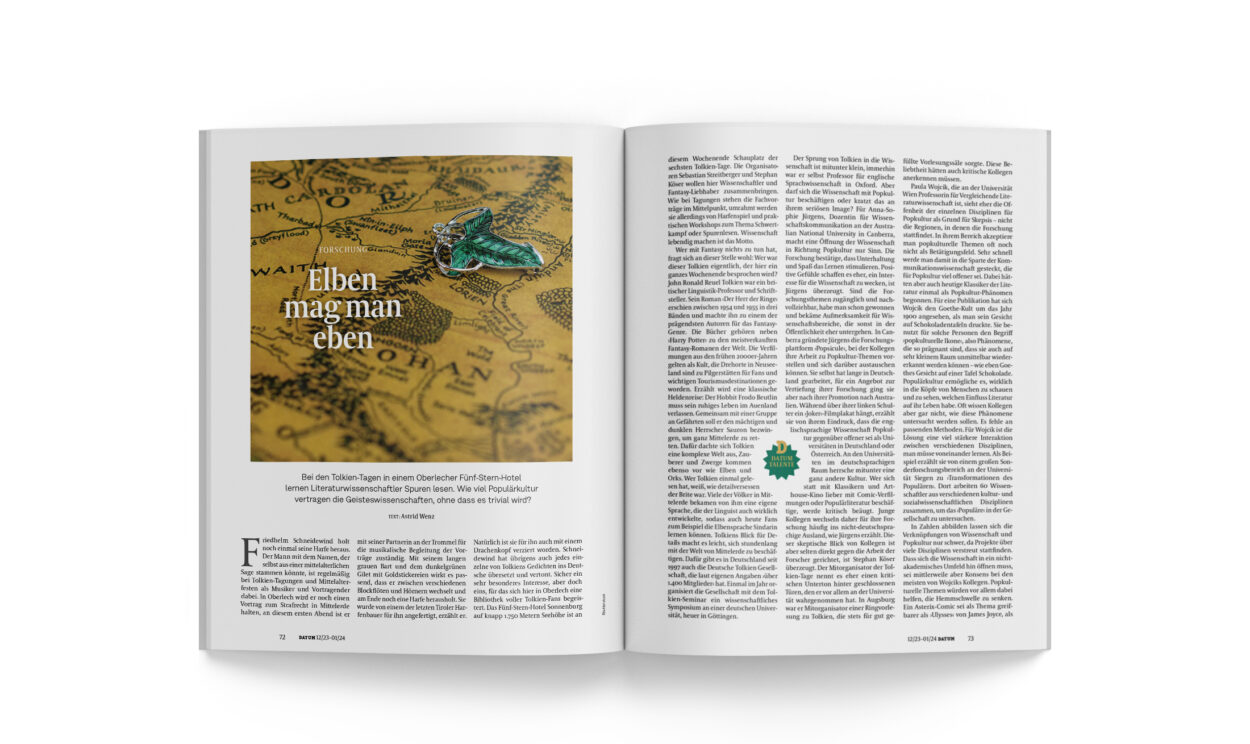 Der Sprung von Tolkien in die Wissenschaft ist mitunter klein, immerhin war er selbst Professor für englische Sprachwissenschaft in Oxford. Aber darf sich die Wissenschaft mit Popkultur beschäftigen oder kratzt das an ihrem seriösen Image? Für Anna-Sophie Jürgens, Dozentin für Wissenschaftskommunikation an der Australian National University in Canberra, macht eine Öffnung der Wissenschaft in Richtung Popkultur nur Sinn. Die Forschung bestätige, dass Unterhaltung und Spaß das Lernen stimulieren. Positive Gefühle schaffen es eher, ein Interesse für die Wissenschaft zu wecken, ist Jürgens überzeugt. Sind die Forschungsthemen zugänglich und nachvollziehbar, habe man schon gewonnen und bekäme Aufmerksamkeit für Wissenschaftsbereiche, die sonst in der Öffentlichkeit eher untergehen. In Canberra gründete Jürgens die Forschungsplattform ›Popsicule‹, bei der Kollegen ihre Arbeit zu Popkultur-Themen vorstellen und sich darüber austauschen können. Sie selbst hat lange in Deutschland gearbeitet, für ein Angebot zur Vertiefung ihrer Forschung ging sie aber nach ihrer Promotion nach Australien. Während über ihrer linken Schulter ein ›Joker‹-Filmplakat hängt, erzählt sie von ihrem Eindruck, dass die englischsprachige Wissenschaft Popkultur gegenüber offener sei als Universitäten in Deutschland oder Österreich. An den Universitäten im deutschsprachigen Raum herrsche mitunter eine ganz andere Kultur. Wer sich statt mit Klassikern und Arthouse-Kino lieber mit Comic-Verfilmungen oder Populärliteratur beschäftige, werde kritisch beäugt. Junge Kollegen wechseln daher für ihre Forschung häufig ins nicht-deutschsprachige Ausland, wie Jürgens erzählt. Dieser skeptische Blick von Kollegen ist aber selten direkt gegen die Arbeit der Forscher gerichtet, ist Stephan Köser überzeugt. Der Mitorganisator der Tolkien-Tage nennt es eher einen kritischen Unterton hinter geschlossenen Türen, den er vor allem an der Universität wahrgenommen hat. In Augsburg war er Mitorganisator einer Ringvorlesung zu Tolkien, die stets für gut gefüllte Vorlesungssäle sorgte. Diese Beliebtheit hätten auch kritische Kollegen anerkennen müssen.