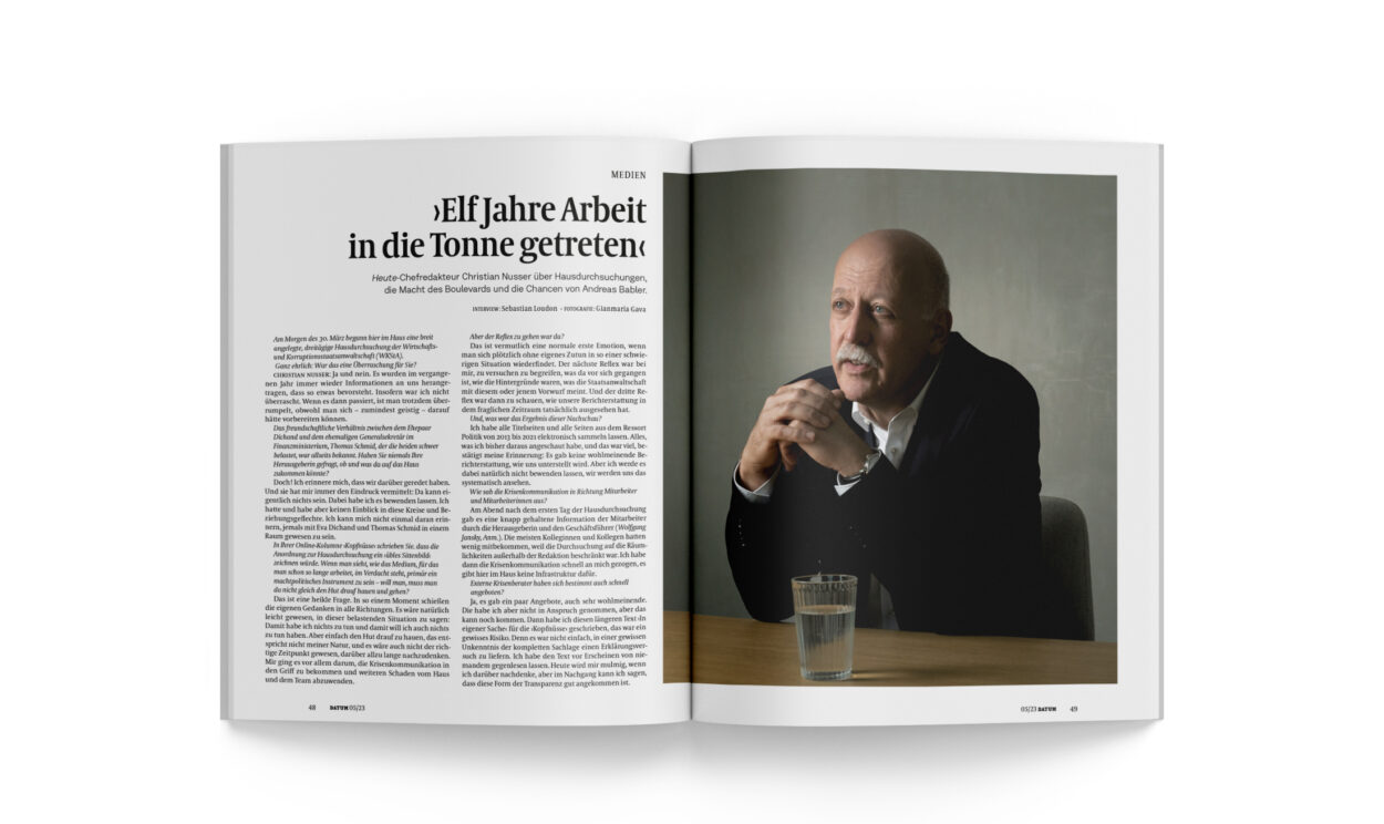 In Ihrer Online-Kolumne ›Kopfnüsse‹ schrieben Sie. dass die Anordnung zur Hausdurchsuchung ein ›übles Sittenbild‹ zeichnen würde. Wenn man sieht, wie das Medium, für das man schon so lange arbeitet, im Verdacht steht, primär ein machtpolitisches Instrument zu sein – will man, muss man da nicht gleich den Hut drauf hauen und gehen?