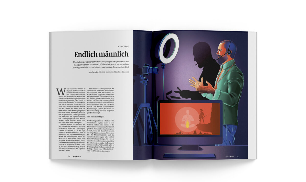 Maskulinitätstrainer lehren in kostspieligen Programmen, wie man zum wahren Mann wird. Viele arbeiten mit esoterischen Deutungsmodellen – und einem reaktionären Geschlechterbild.
