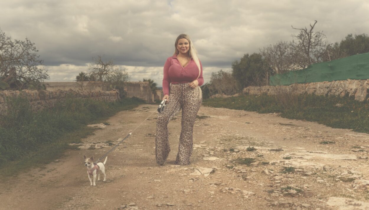 Sie habe gerade ihr Haar mit einer Pflegespülung einshampooniert, plötzlich sei kein Wasser mehr aus der Leitung gekommen. Schon wieder. Deswegen, erzählt sie, sei sie eben ungewaschen mit ihrem Hund Pinot Gassi gegangen: Ein Erotik-Modell mit N-Körbchen, blonder Wallemähne und künstlichen Wimpern, im Schlafanzug, ungeschminkt mit nassem Haar und einem Chihuahua-Welpen an der Leine, irgendwo in der spanischen Einöde. Außer ein paar Schweinen, die sich am Grundstück des Nachbarn im Dreck suhlten, und wilden Hühnern, habe sie niemand gesehen.