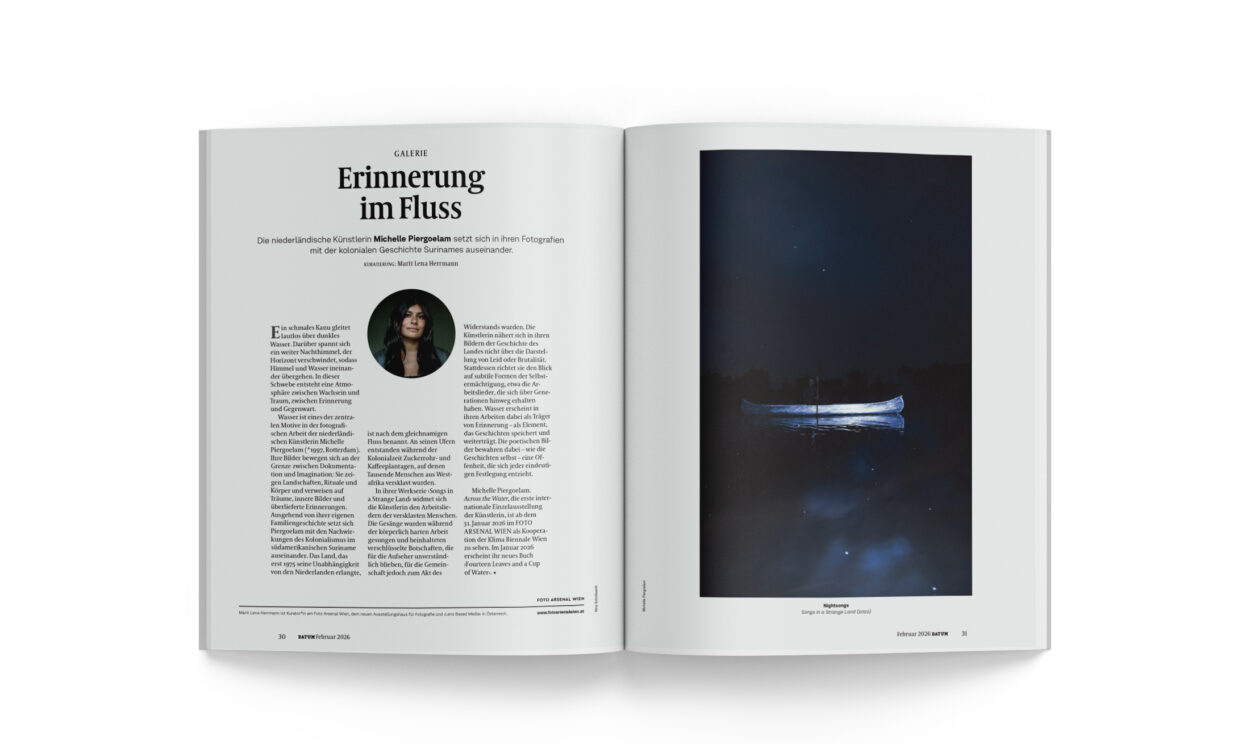 Wasser ist eines der zentralen Motive in der fotografischen Arbeit der niederländischen Künstlerin Michelle Piergoelam (*1997, Rotterdam). Ihre Bilder bewegen sich an der Grenze zwischen Dokumentation und Imagination: Sie zeigen Landschaften, Rituale und Körper und verweisen auf Träume, innere Bilder und überlieferte Erinnerungen. Ausgehend von ihrer eigenen Familiengeschichte setzt sich Piergoelam mit den Nachwirkungen des Kolonialismus im südamerikanischen Suriname auseinander. Das Land, das erst 1975 seine Unabhängigkeit von den Niederlanden erlangte, ist nach dem gleichnamigen Fluss benannt. An seinen Ufern entstanden während der Kolonialzeit Zuckerrohr- und Kaffeeplantagen, auf denen Tausende Menschen aus Westafrika versklavt wurden.