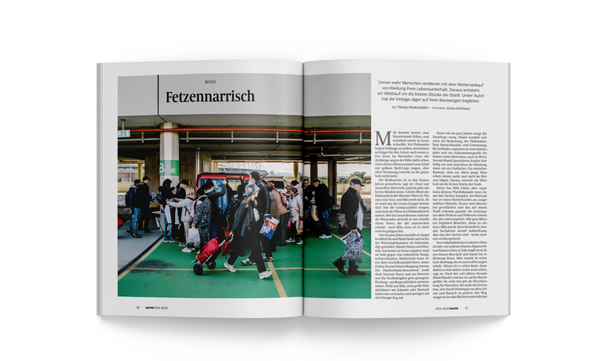 Seit ein paar Jahren handelt sie hauptberuflich Second-Hand-Mode und ist bei der Wirtschaftskammer als Selbstständige gemeldet. Mäntel, Hosen und Oberteile, was immer sie heute ergattert, wird sie bald gegen eine ordentliche Marge weiterverkaufen. Mittlerweile kann sie von dem Geschäftsmodell leben, denn: Online-Second-Hand-Shopping boomt. Der Durchschnitts-Konsument kauft dank besserer Preise und aus Bewusstsein für Nachhaltigkeit gern getragene Kleidung – aus Bequemlichkeit meistens online. Nicht nur Mila, auch große Handelshäuser wie Zalando oder Karstadt haben das verstanden und springen auf den Vintage-Zug auf.