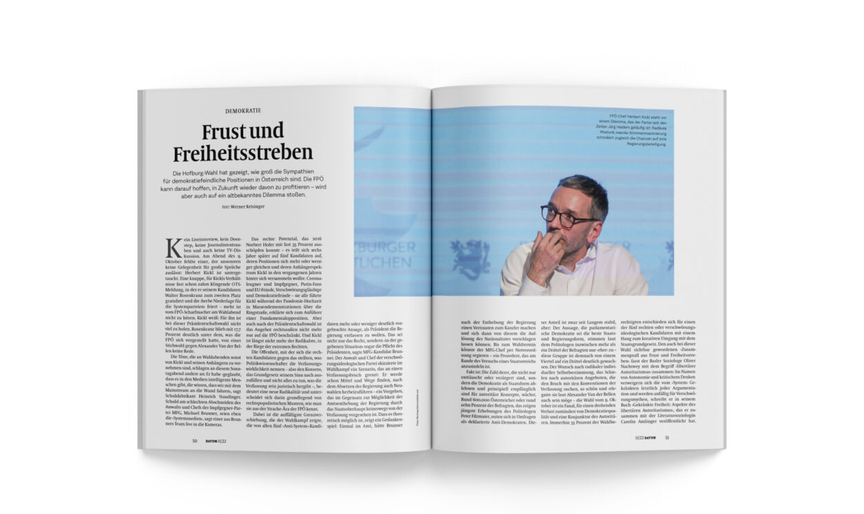 Kein Liveinterview, kein Doorstep, keine Journalistentrauben und auch keine TV-Diskussion. Am Abend des 9. Oktober fehlte einer, der ansonsten keine Gelegenheit für große Sprüche auslässt: Herbert Kickl ist untergetaucht. Eine knappe, für Kickls Verhältnisse fast schon zahm klingende OTS-Meldung, in der er seinem Kandidaten Walter Rosenkranz zum zweiten Platz gratuliert und die ›herbe Niederlage für die Systemparteien‹ feiert – mehr ist vom FPÖ-Scharfmacher am Wahlabend nicht zu hören. Kickl weiß: Für ihn ist bei dieser Präsidentschaftswahl nicht viel zu holen. Rosenkranz blieb mit 17,7 Prozent deutlich unter dem, was die FPÖ sich vorgestellt hatte, von einer Stichwahl gegen Alexander Van der Bellen keine Rede.