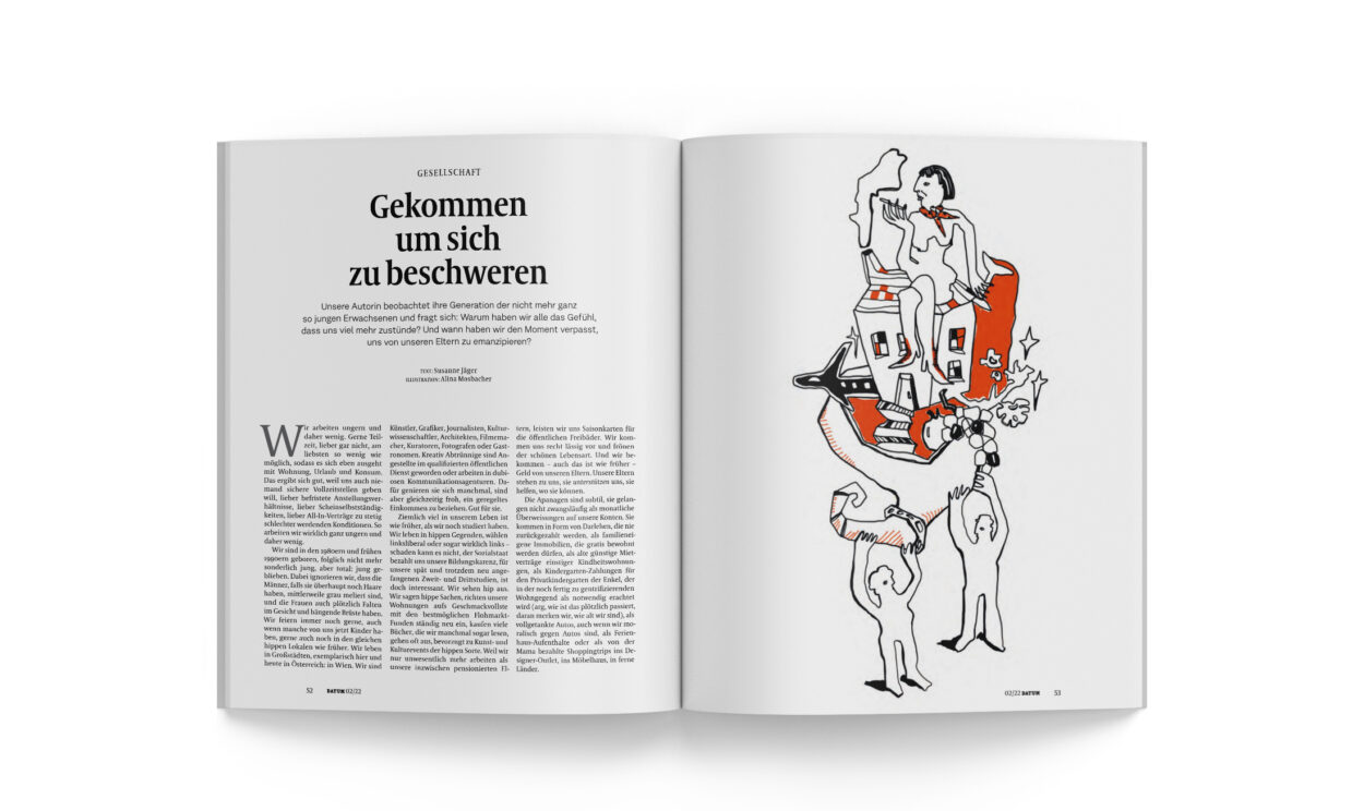 Unsere Autorin beobachtet ihre Generation der nicht mehr ganz so jungen Erwachsenen und fragt sich: Warum haben wir alle das Gefühl, dass uns viel mehr zustünde? Und wann haben wir den Moment verpasst, uns von unseren Eltern zu emanzipieren?