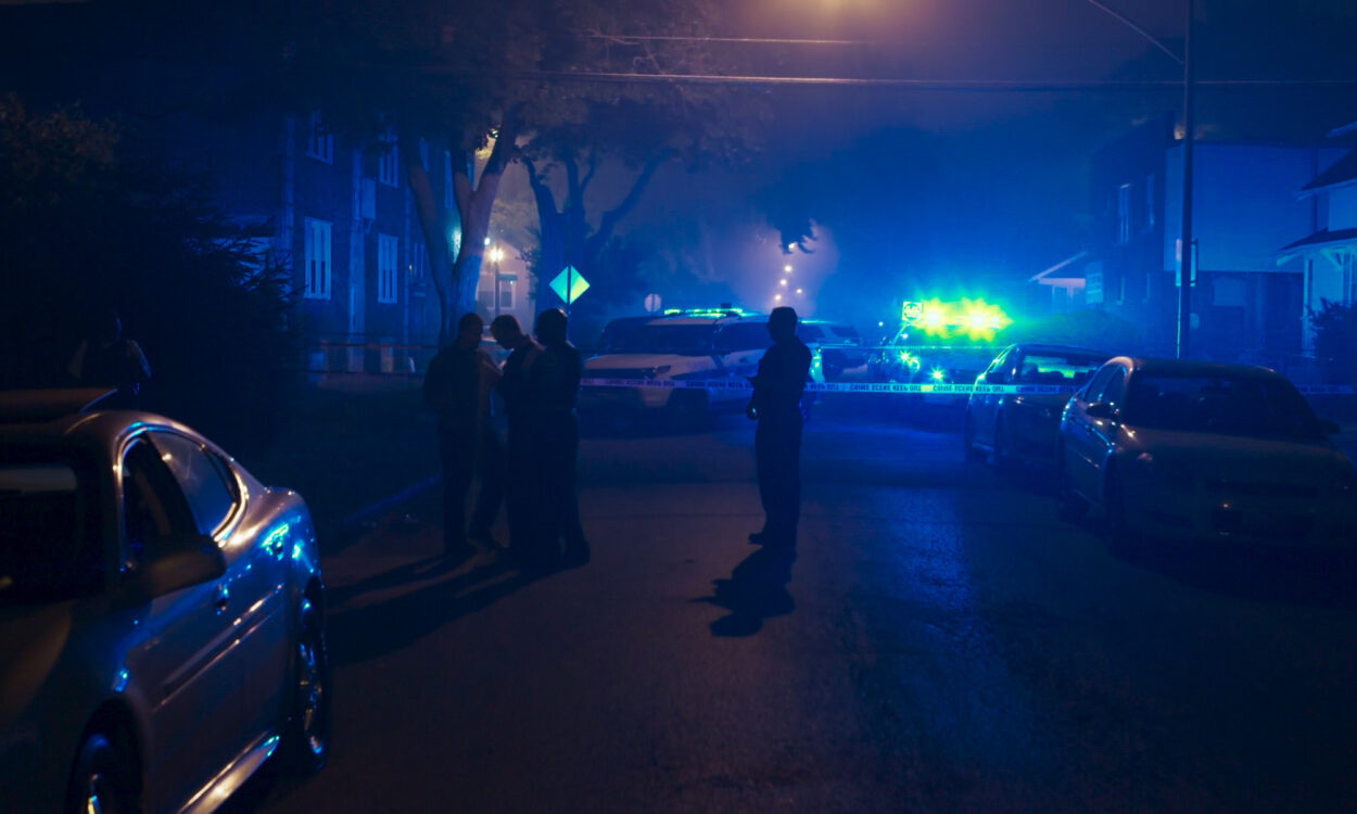 Dabei schlafen wir wenig, unsere Nächte verbringen wir im Auto von Ken Herzlich, einem alteingesessenen Crime-Scene Reporter aus Down Town Chicago. Ken fährt einen alten, gut gefederten Polizeiwagen mit vielen Antennen. Die Geräuschkulisse im Auto ist unerträglich und Ken immer konzentriert, damit ihm keiner der nervtötenden Funksprüche entgeht, die zwischen Rauschen und Fiepsen unverständlich ins Auto dringen. Die Arbeit eines Crime-Scene Reporters besteht im Grunde genommen aus Warten – fokussiertem Warten auf das nächste Unglück. Wenn wir die Nachricht von einer Schießerei erhalten, setzen wir uns in Bewegung. Ken fährt mit hohem Tempo und ohne GPS zielsicher durch alle Stadtteile. Am Tatort angekommen, geht alles schnell, Ken gibt das Tempo vor: Kamera auspacken, Stativ aufstellen, draufhalten, Perspektiven verändern, wenn es hochkommt noch ein Interview, meist nicht, dann sofort wieder einpacken, rein ins Auto und weg. Schon während wir den Ort verlassen wird das Material von Ken auf einen externen Server hochgeladen und wenig später in den News-Kanälen gesendet. Austauschbare Bilder, Nacht für Nacht dieselben. Und doch nicht, rufe ich mir ins Bewusstsein, hier sterben Menschen, keine Zahlen.