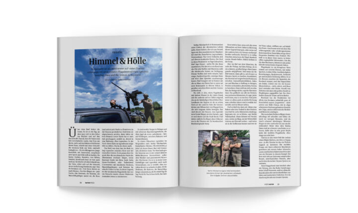 Über dem Dorf brütet die Sonne. Es ist so ein Tag, an dem man sich in den Schatten flüchtet und auf den Abend hofft. Darauf, dass die Sonne endlich verschwindet. Ljuda, eine Frau um die 60, steht auf dem kleinen Feld hinter ihrem Haus, schiebt mit einer Schaufel die trockene Erde zur Seite, sammelt Erdäpfel ein – für das Mittagessen: Junge Kartoffeln mit Sauerrahm, ausgelassenem Speck und Dille will sie kochen. Kukuruz, Gurken, Karotten, rote Rüben, Zwiebel, Knoblauch baut sie hier auch noch an. Sie wischt sich den Schweiß von der Stirn, stützt sich auf die Schaufel, deutet in Richtung Nordosten, sagt: ›Von da kommen sie.‹ Und dann deutet sie nach Westen: ›Dorthin fliegen sie – jede Nacht.‹ Die Drohnen, die Raketen, die Marschflugkörper meint sie, die Russland zuletzt jede Nacht zu Hunderten in die Ukraine geschickt hat. Und wenn sie abgeschossen werden, dann fallen sie vom Himmel. Letzte Nacht hat es zweimal gescheppert, erzählt sie, deutet in eine Richtung: ›Dort irgendwo.‹ In der Nacht davor habe sie irgendwann aufgehört zu zählen. Und in der davor auch.