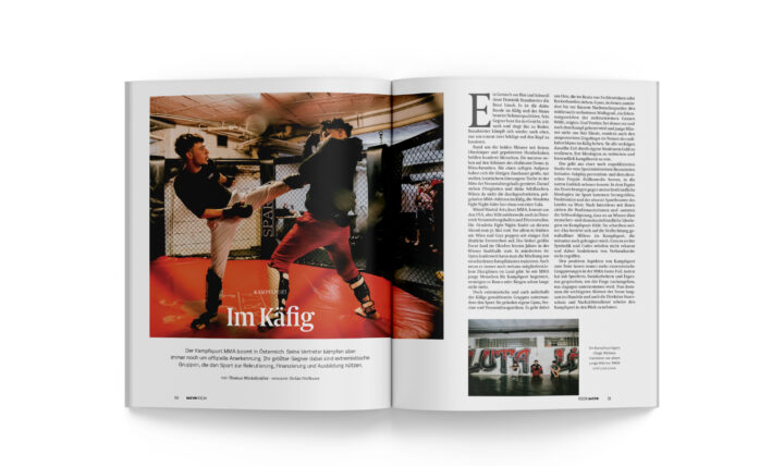 Mixed Martial Arts, kurz MMA, kommt aus den USA, aber füllt mittlerweile auch in Österreich Veranstaltungshallen und Fitnessstudios. Die ›Vendetta Fight Night‹ findet an diesem Abend zum 37. Mal statt. Vor allem in Städten wie Wien und Graz poppen seit einiger Zeit ähnliche Eventreihen auf. Das bisher größte Event fand im Oktober letzten Jahres in der Wiener Stadthalle statt. In mindestens 60 Gyms landesweit kann man die Mischung aus verschiedenen Kampfkünsten trainieren. Auch wenn es immer noch weitaus mitgliederstärkere Disziplinen im Land gibt: So wie MMA junge Menschen für Kampfsport begeistert, vermögen es Boxen oder Ringen schon lange nicht mehr.