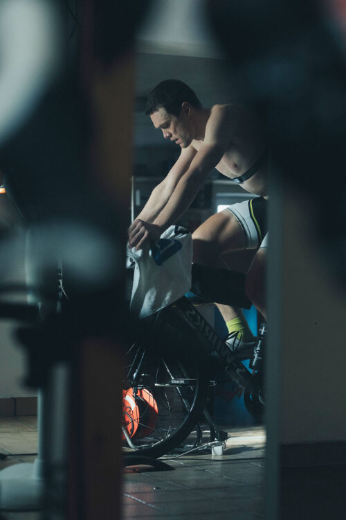 In seinem Keller bekommt man Christoph Strassers Glück zu sehen. Er pinkelt nach dem Aufwärmen kurz in den Garten, und dann geht es los. Heute ist der Tag des harten Trainings mit Intervallen über 400 Watt und des Fotoshootings für diese Geschichte. Den ersten Termin musste Strasser verschieben, weil er sich bei einem Spaziergang auf den Grazer Schloßberg einen Muskelkater zuzog. Seine Muskeln sind ausschließlich fürs Radfahren trainiert. Andere Bewegungen vertragen sie schlecht.