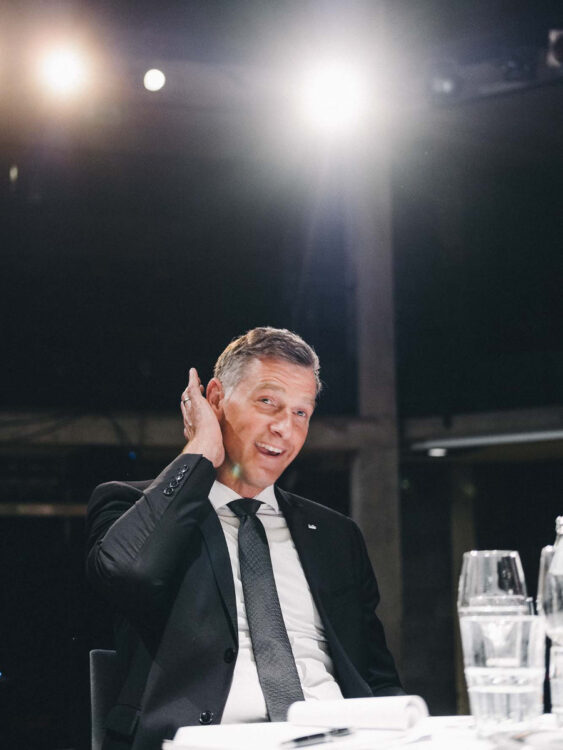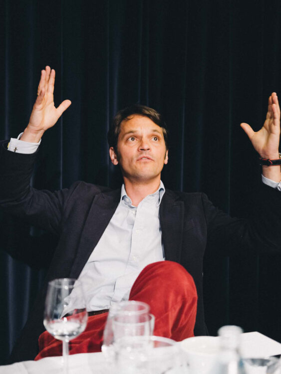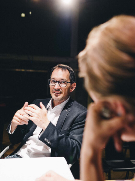 13.20 Uhr. Langsamer, lässiger Schritt, fester Händedruck. Thomas Reiter, sonnengebräunt, Typ Skilehrer, ist zu früh dran und tatsächlich so etwas wie ein Skilehrer: bloß für Profis und solche, die es werden wollen. Im Skigymnasium Stams, halb Skischule, halb Boot Camp, leitet er den Bereich Alpin. ›War scho lang nimmer do‹, sagt er im Tiroler Dialekt, schaut sich im Theater um und bestellt einen großen Apfelsaft mit Leitungswasser. In aufrechter Haltung, die Brust rausgestreckt, steigt er die drei Stufen zur Bühne hoch.