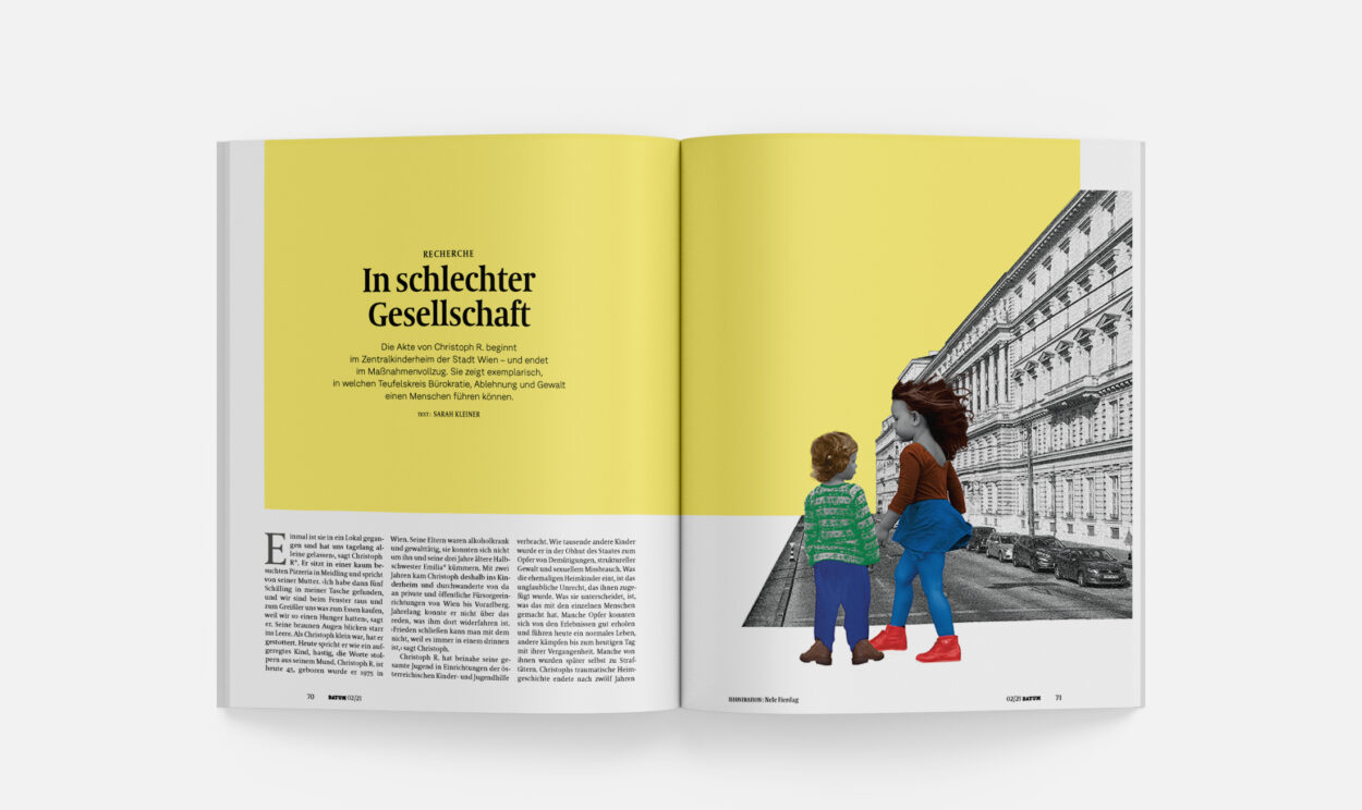 › Gegen 19:00 Uhr bemerkte ich 2 kleine Kinder auf der Fahrbahn der Nordbahnstraße in Richtung Innstraße gehen. […] Da sie auf Befragen nach ihrem Wohnort keine Angaben machen konnten, verständigte ich die Polizei ‹, heißt es in der Meldung der Bundespolizeidirektion Wien aus dem März 1978. Ein Passant besiegelt damit das weitere Schicksal von Christoph und Emilia. Die Sechsjährige und ihr damals dreijähriger Bruder waren an diesem Abend von zu Hause weggelaufen, und die Polizei › überstellt ‹ die beiden ins Zentralkinderheim (ZKH) der Stadt Wien . Die darauffolgenden Jahre von Christophs Lebensgeschichte liegen DATUM penibel dokumentiert vor. Situations- und Entwicklungsberichte, Beschlüsse von Bezirksgerichten, Schreiben von Jugendämtern an Bezirkshauptmannschaften und retour – hunderte Schriftstücke schildern in trockenem Bürokratendeutsch, wie ein Kind durch jahrelange Ablehnung und Gewalt emotional verkümmert und schließlich selbst zum Gewalttäter wird. Und sie geben Einblick in das Leben eines österreichischen Heimkindes der 1970er- und 1980er-Jahre.
