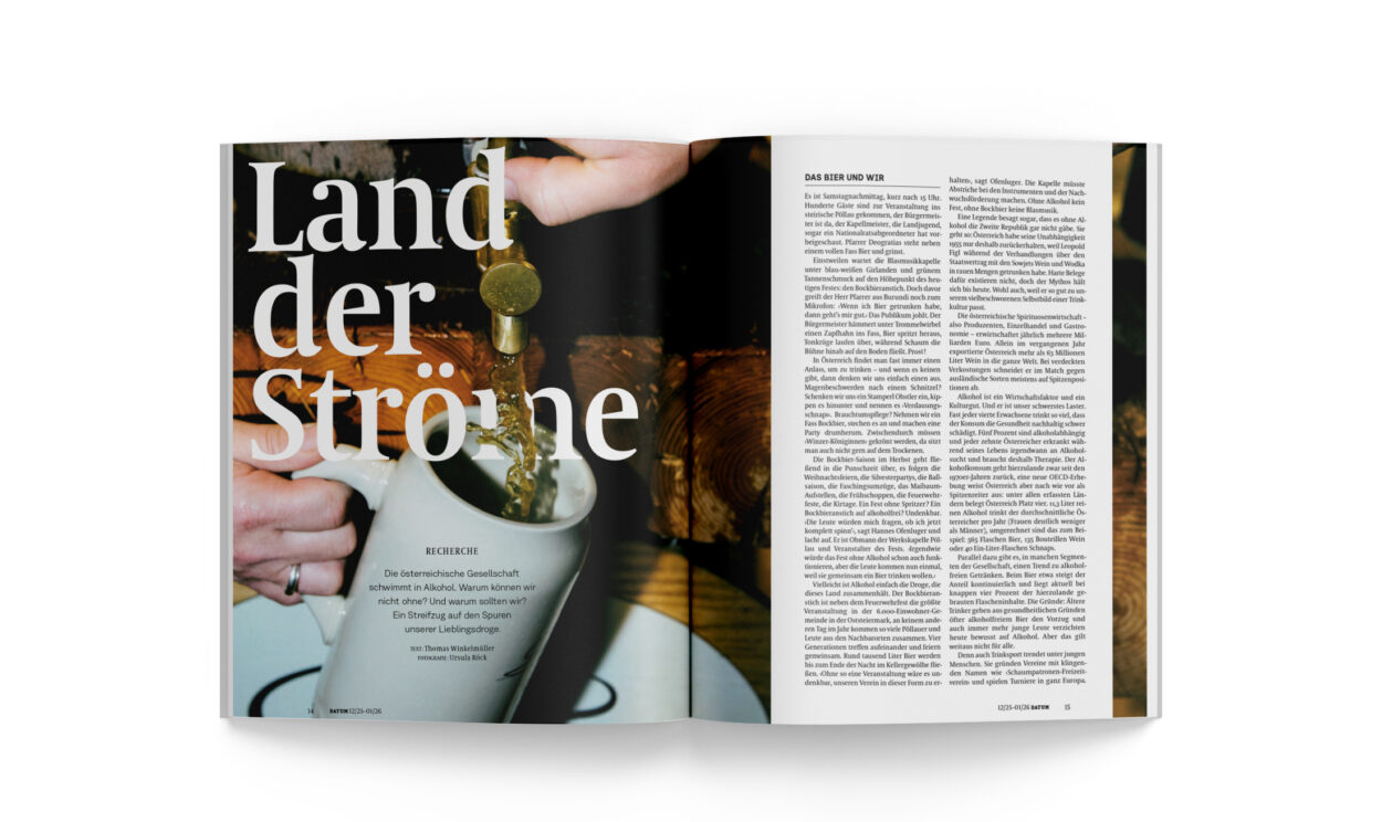 Die österreichische Gesellschaft schwimmt in Alkohol. Warum können wir nicht ohne? Und warum sollten wir? Ein Streifzug auf den Spuren unserer Lieblingsdroge.