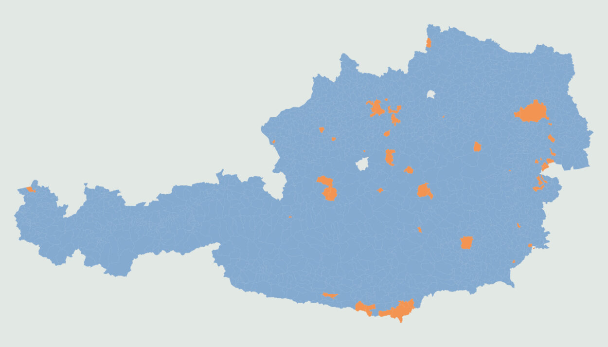 Bekanntlich gibt es in Österreich mehr Wähler rechter Parteien (VP, FP) als Wähler*innen linker Parteien (SP, Grüne; Splitterparteien sind jeweils dabei, Spezialfälle wie die NEOS nicht). Bei der letzten Nationalratswahl sah das auf Gemeindeebene so aus: