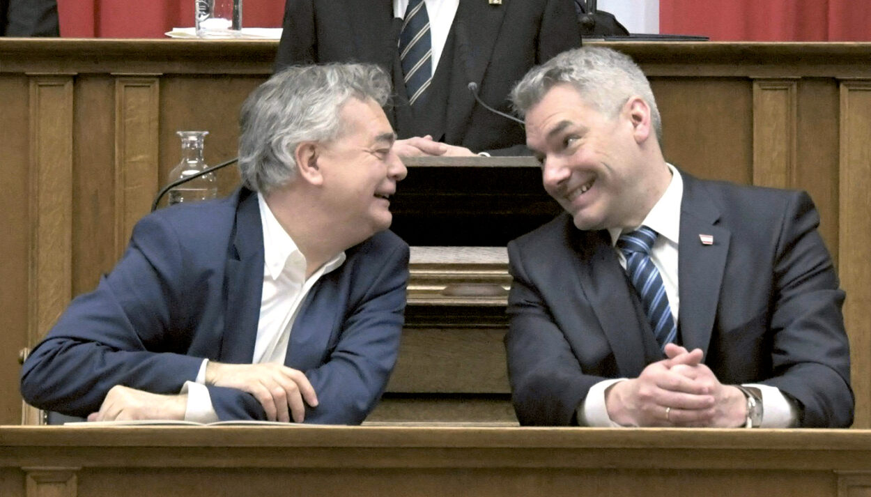 Das Herz der liberalen Demokratie ist das Finden einer gemeinsamen Lösung‹, leitete Bundespräsident Alexander Van der Bellen heuer bei der Angelobung für seine zweite Amtszeit eine kleine Bitte an sein Publikum ein. ›Schauen Sie Ihre Sitznachbarin, Ihren Nachbarn an‹, sagte Van der Bellen an die Zuhörer im historischen Sitzungssaal des Parlaments gerichtet. Auch wenn er wisse, dass sich nicht jeder hier leiden könne, alle hätten sie die Verpflichtung, auch das Gute im Gegenüber zu sehen und für das gemeinsame Wohl zusammenzuarbeiten. Was genau Kanzler Karl Nehammer und seinem Vize Werner Kogler in diesem Moment durch ihre Köpfe ging, ist schwer zu sagen. Es besteht aber wenig Zweifel daran, dass sich die beiden in diesem Moment ganz gut leiden konnten.