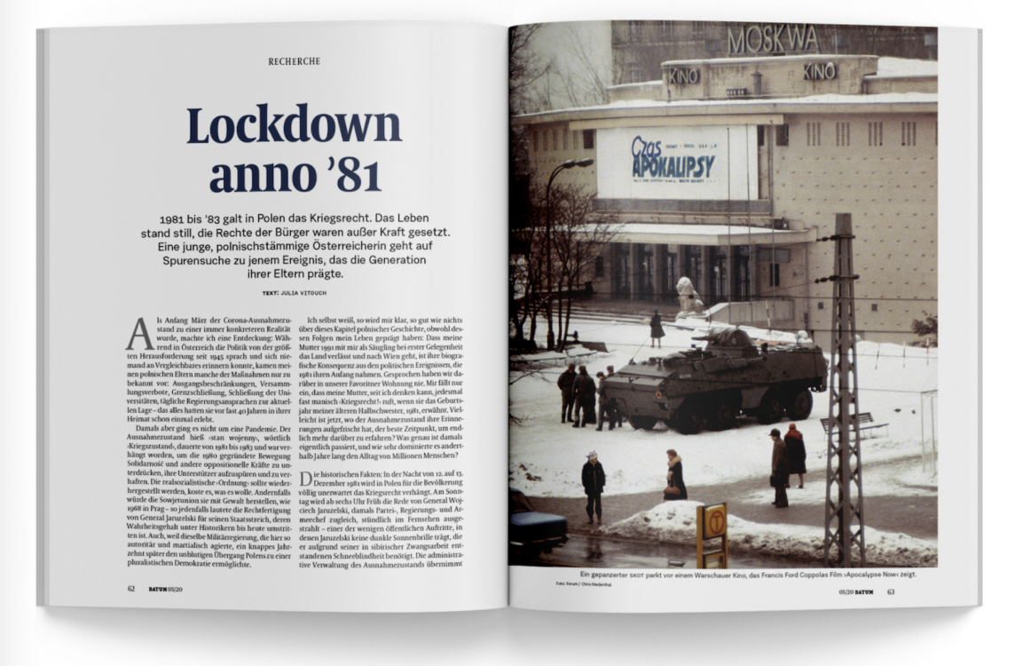 Als Anfang März der Corona-Ausnahmezustand zu einer immer konkreteren Realität wurde, machte ich eine Entdeckung: Während in Österreich die Politik von der größten Herausforderung seit 1945 sprach und sich niemand an Vergleichbares erinnern konnte, kamen meinen polnischen Eltern manche der Maßnahmen nur zu bekannt vor: Ausgangsbeschränkungen, Versammlungsverbote, Grenzschließung, Schließung der Universitäten, tägliche Regierungsansprachen zur aktuellen Lage – das alles hatten sie vor fast 40 Jahren in ihrer Heimat schon einmal erlebt.