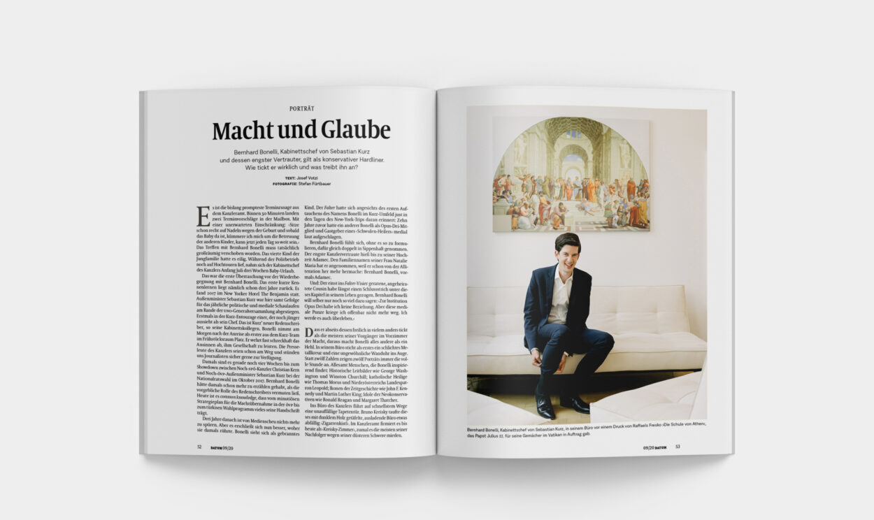 Eine zweifache Botschaft, die des Kanzlers rechte Hand damit absetzen will. Stefan Wallner ist nicht nur sein neues Vis-à-vis als Kabinettschef bei Vizekanzler und Grünen-Chef Werner Kogler. Er kommt aus der diametral anderen Ecke des Katholizismus als Bonelli. Der Ex-Geschäftsführer der Grünen hatte seine Karriere in der Caritas begonnen: ein › Herz-Jesu-Sozialist ‹, wie es in konservativen Kirchenkreisen bis heute gerne tönt.