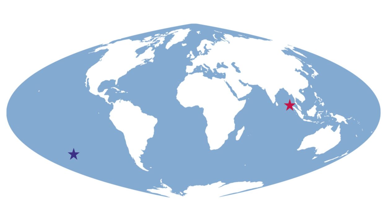 Zunächst wäre da die Insel Teressa (roter Stern), Teil der heute indischen Nikobaren. Ihr Name ist ein Überbleibsel der seltsamen sechsjährigen Geschichte Österreichs als Kolonialmacht (ja, wirklich) im Golf von Bengalen. Es gibt keinen Direktflug von Wien und sowieso nichts von Interesse, da brauchen Sie nicht hinfahren.
