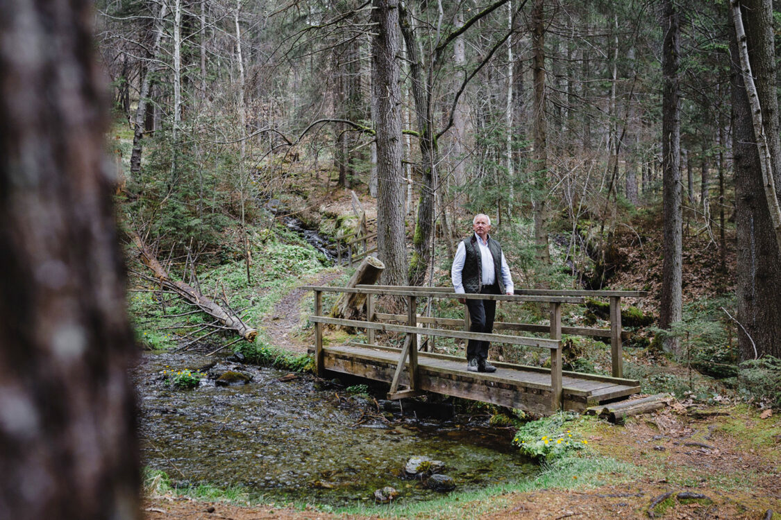 Der Mann, der von sich sagt, dass er dem Land endlich den Frieden gebracht hat, tankt gerne Kraft in der Natur. Hier, wo der Tiebelbach entspringt, der sich weiter unten im Tal durch seinen Heimatort Himmelberg schlängelt, ein Name wie aus dem Märchen. Immer wieder kehrt der Mann zur Quelle zurück, dort, wo das Wasser glucksend aus dem Boden schießt, um durchzuatmen, nachzudenken oder einfach Trinkwasser für seine Familie zu holen. Wenn er nicht in den Wald geht, sagt er, dann beschäftigt er sich mit dem mittelalterlichen Templerorden, und schüttelt dabei den Kopf: Möge doch, bitteschön, heute jede Religion ihren Platz auf dieser Welt haben. Besonders beeindruckt habe ihn ein Treffen mit ›Seiner Heiligkeit‹, dem Dalai Lama. Über dem Rückspiegel in seinem schwarzen Pick-Up, mit dem er sonst zu Forstarbeiten in den Wald fährt, baumelt eine Gebetskette, die ihm ein Imam aus Sarajevo geschenkt hat, bei dem er oft zum Tee geladen ist. ›Aber in meinem nächsten Leben werde ich ohnehin buddhistischer Gelbmützenmönch‹, sagt er. Halb im Scherz, halb im Ernst.