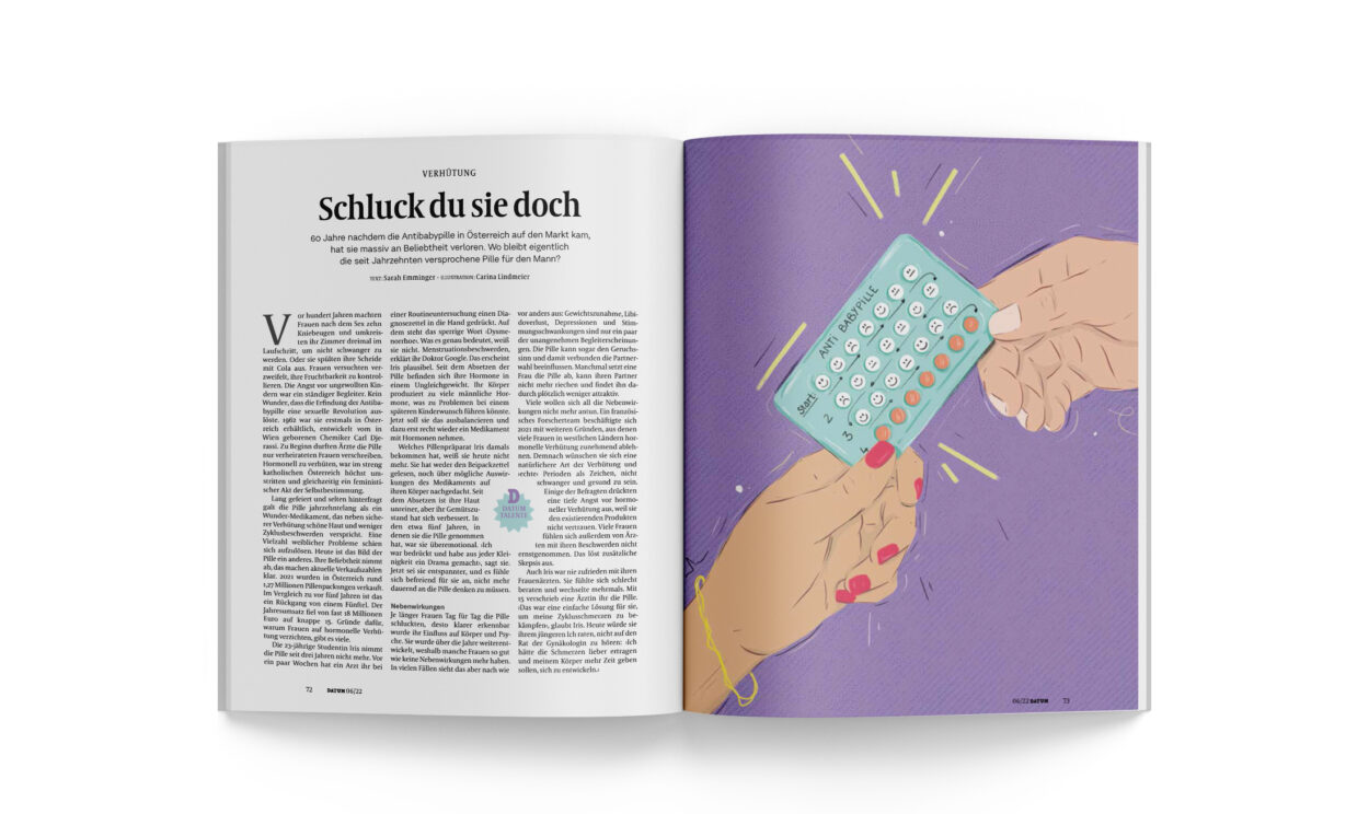 Nicht alle Männer verstehen, warum Frauen sich nicht mehr allein um Verhütung kümmern wollen. Erst kürzlich hatte Iris ein Date mit jemandem, der von Anfang an klarmachte, dass er nicht mit Kondom Sex haben möchte. ›Meine Reaktion darauf war: Okay, dann passiert es nicht‹, erzählt sie und ist stolz darauf, denn vor ein paar Jahren hätte sie sich das wahrscheinlich nicht getraut. Der Mann meinte daraufhin, dass er immer ohne Kondom Sex habe und er keine Frau kenne, die nicht die Pille nimmt. Iris konfrontierte ihr Gegenüber auch mit der Gefahr sexuell übertragbarer Krankheiten. Er gehe jedes Jahr testen, meinte der Mann. Iris hat viel mit ihrem Date diskutiert, weil sie seine Argumente interessant fand. Verstanden habe er sie nicht. Aufgrund solcher Erfahrungen findet Iris, dass Verhütung in Österreich noch immer den Frauen zugeschoben wird.