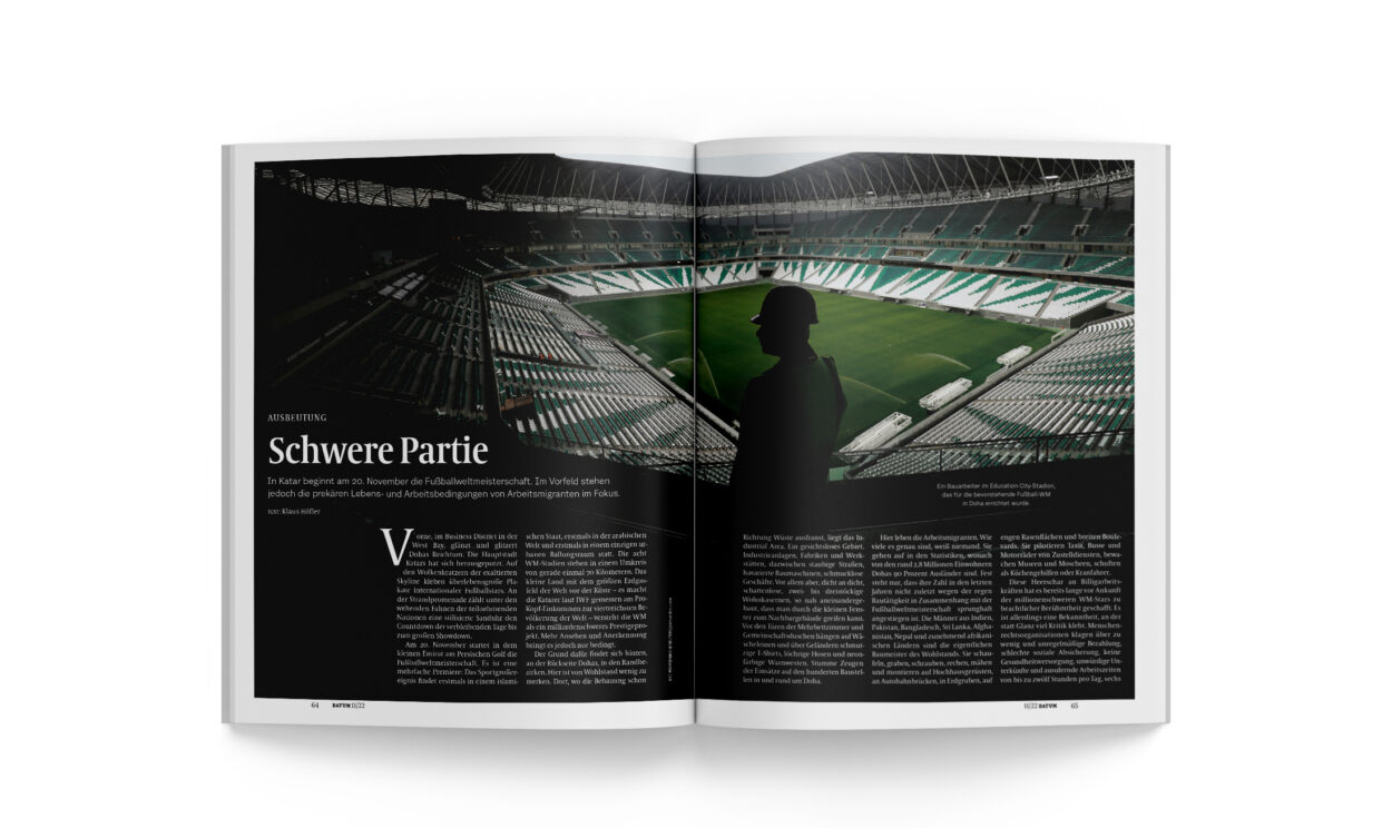 In Katar beginnt am 20. November die Fußballweltmeisterschaft. Im Vorfeld stehen jedoch die prekären Lebens- und Arbeitsbedingungen von Arbeitsmigranten im Fokus.