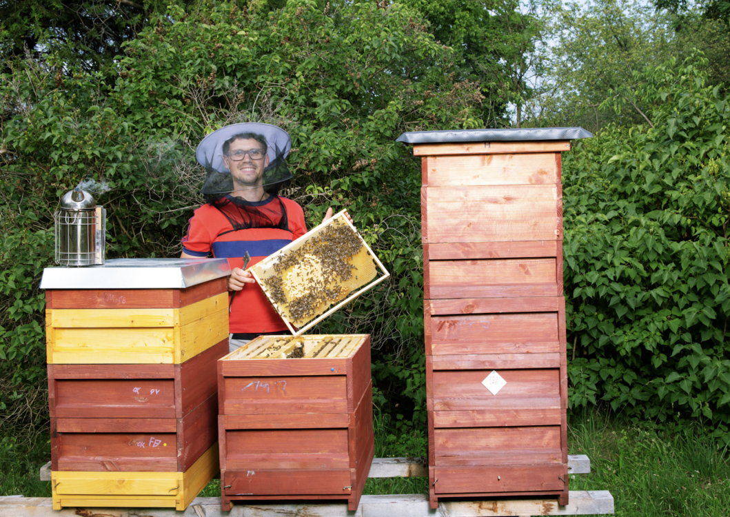 Im Prinzip durch einen Zufall: Meine Mutter hat einen Imker-Kurs gemacht, und als ich einmal zu Hause zu Besuch war, habe ich ihr beim Honigernten geholfen. Das hat mir so viel Freude be-reitet, dass mir klar wurde, dass ich Imker werden will. Mittlerweile bilden mein Team und ich in unserem Betrieb, der 200 Bienenvölker beherbergt, nun selbst Lehrlinge aus.