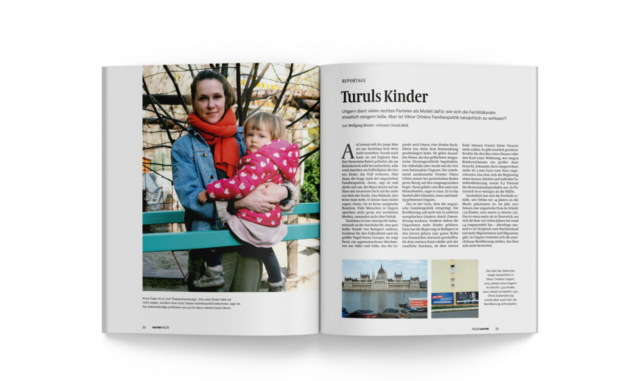 Auf einmal will die junge Mutter aus Tatabánya kein Wort mehr verstehen. Gerade noch hatte sie auf Englisch über ihre lärmenden Buben geflachst, die am Balankatisch wild herumkurbeln, während daneben am Fußballplatz die letzten Kicker das Feld verlassen. Aber dann die Frage nach der ungarischen Familienpolitik. ›Sorry‹, sagt sie und dreht sich um. Ihr Mann deutet auf ein Haus mit rosarotem Dach auf der anderen Seite der Straße. Eine Behörde, dort wisse man mehr. Er könne dazu nichts sagen: ›Sorry.‹ Da ist keine untypische Reaktion. Viele Menschen in Ungarn sprechen nicht gerne mit westlichen Medien, zumindest nicht über Politik.